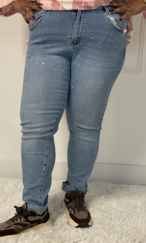 Spijkerbroek met strass steentjes flair pijp SM1083-4