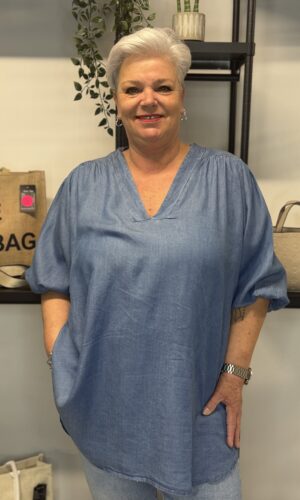 Spijkertop v-hals en pofmouw Bojana