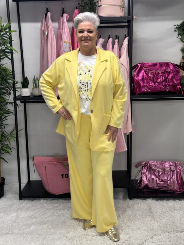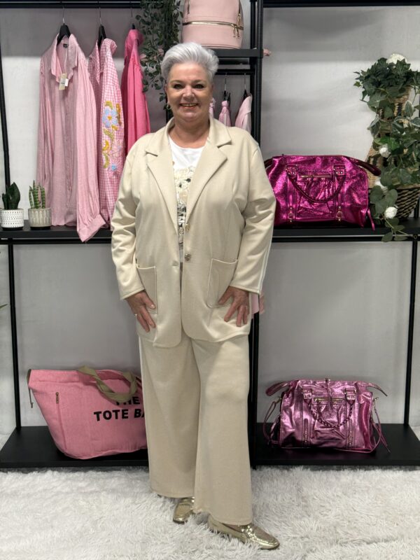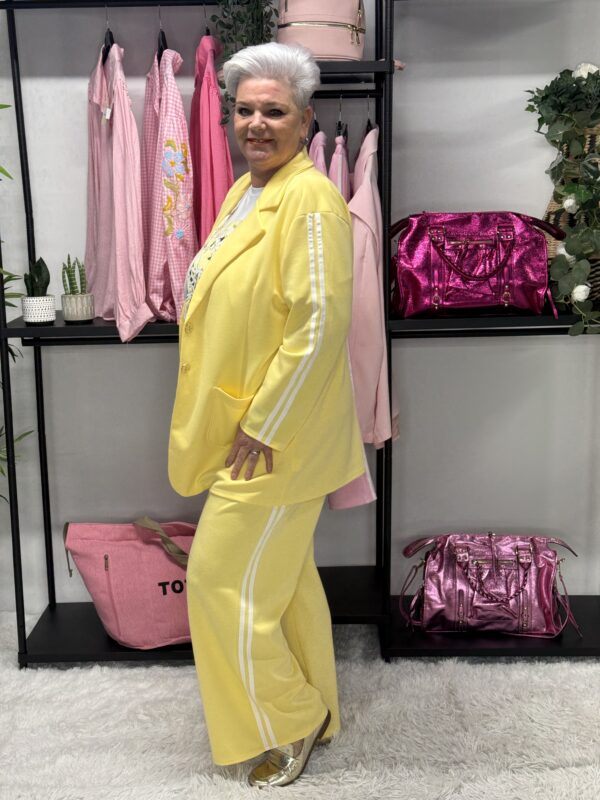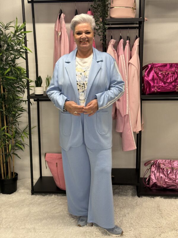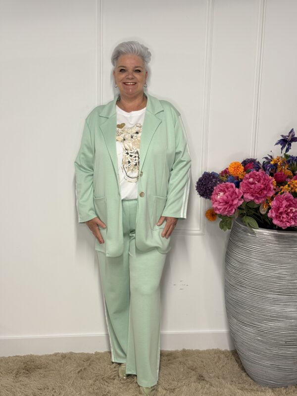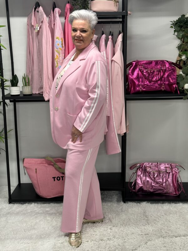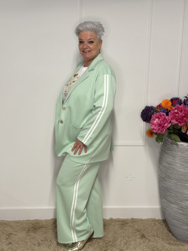 De subtiele strepen geven het pak een sportieve en moderne uitstraling. Ideaal voor een casual dagje uit, een relaxte werkdag of gewoon om comfortabel thuis te dragen — zonder in te leveren op stijl.