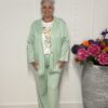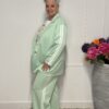 De top heeft een losse, flatterende fit en de broek is voorzien van een comfortabele tailleband voor extra draaggemak.