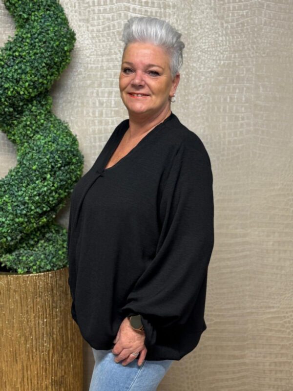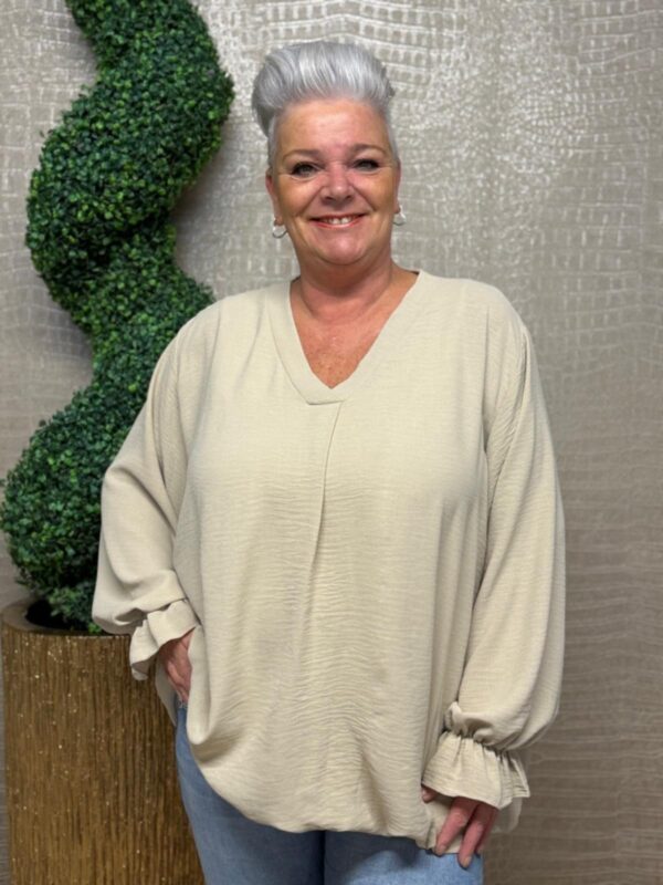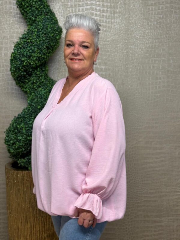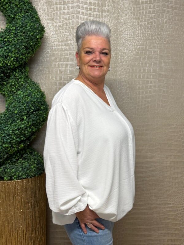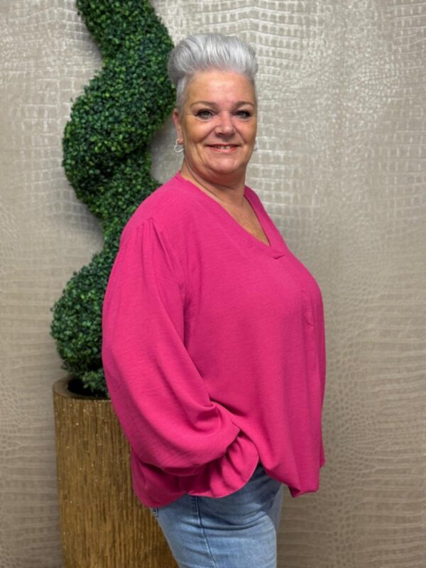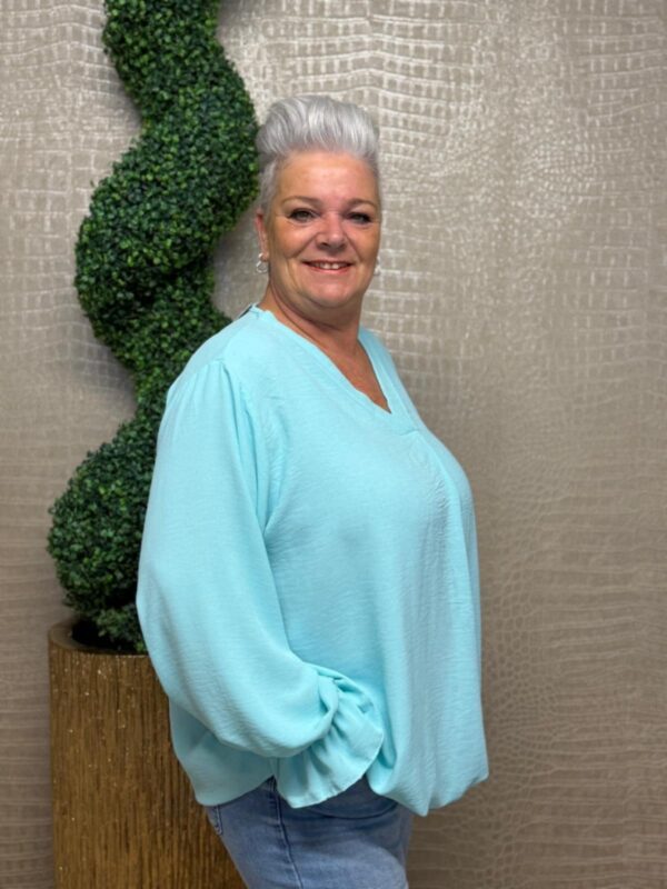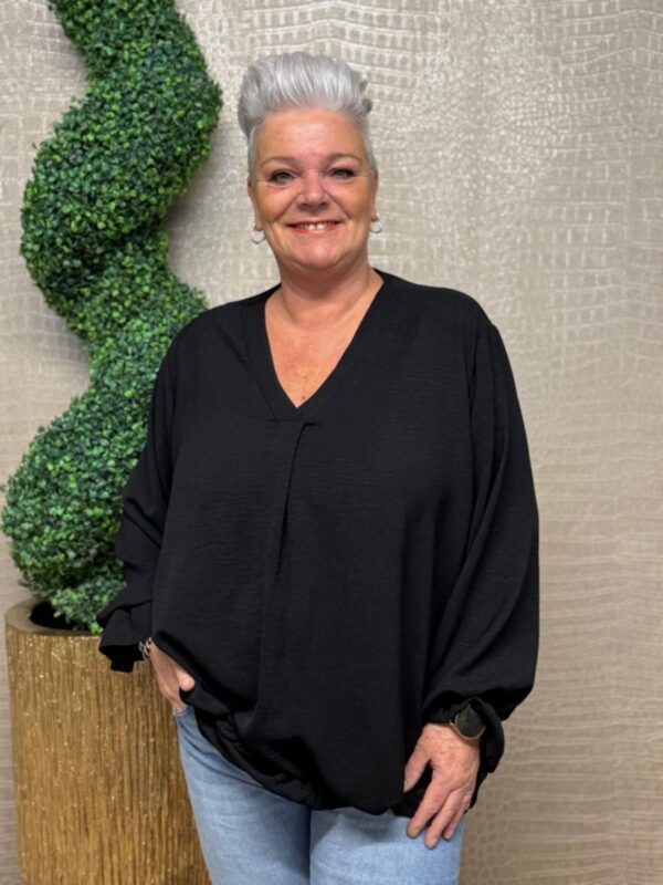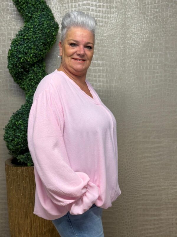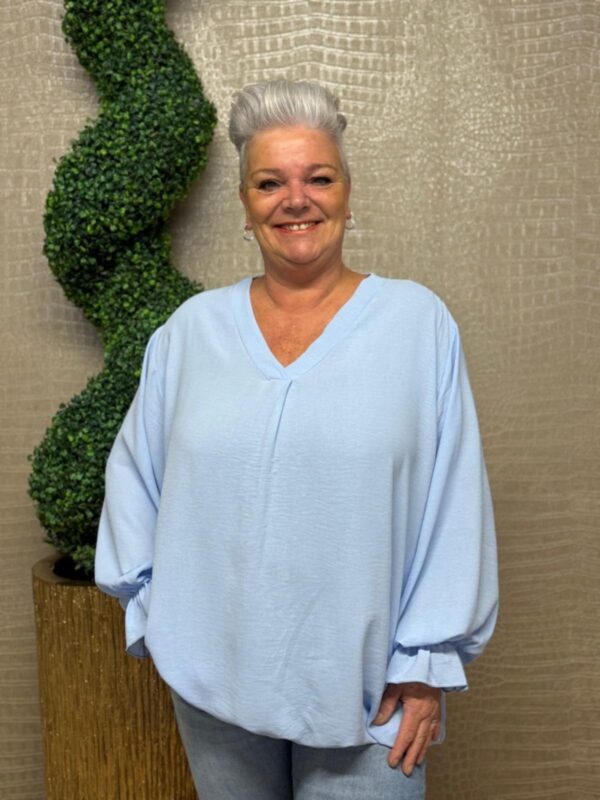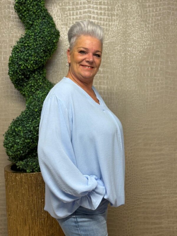 Deze ballon top is een echte voorjaarsfavoriet! De V-hals zorgt voor een elegante uitstraling, terwijl de trompetmouwen een speels en trendy accent geven. Het ballonmodel valt soepel en flatteus en zit heerlijk comfortabel. Verkrijgbaar in diverse frisse voorjaarskleuren en dankzij het one size model draagbaar tot en met maat 50/52.