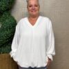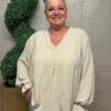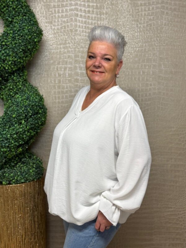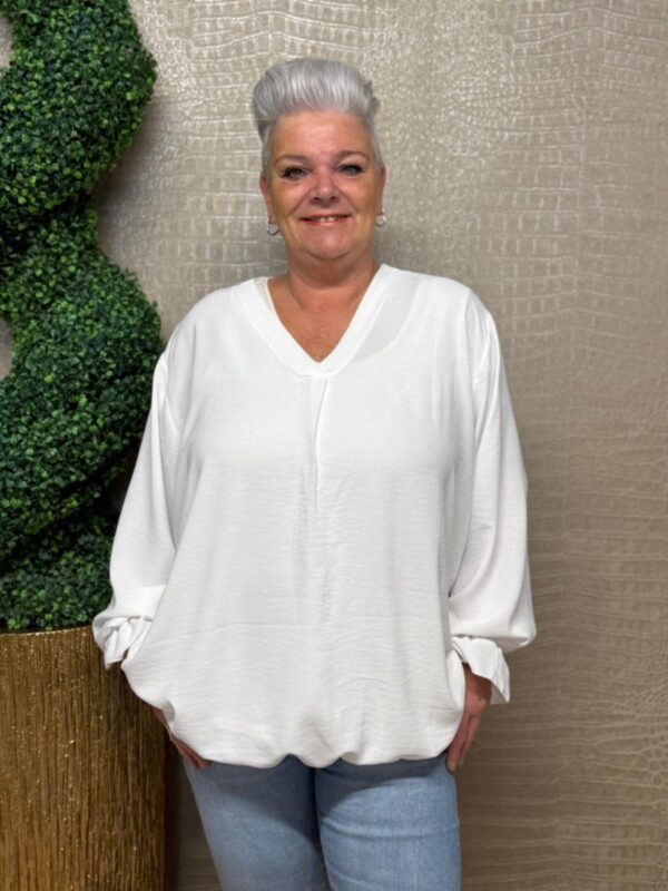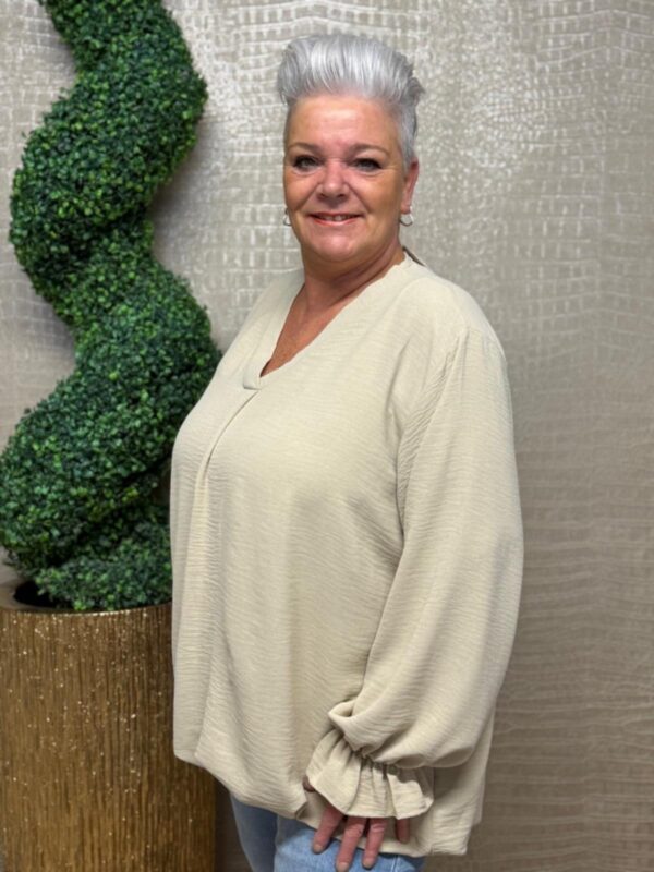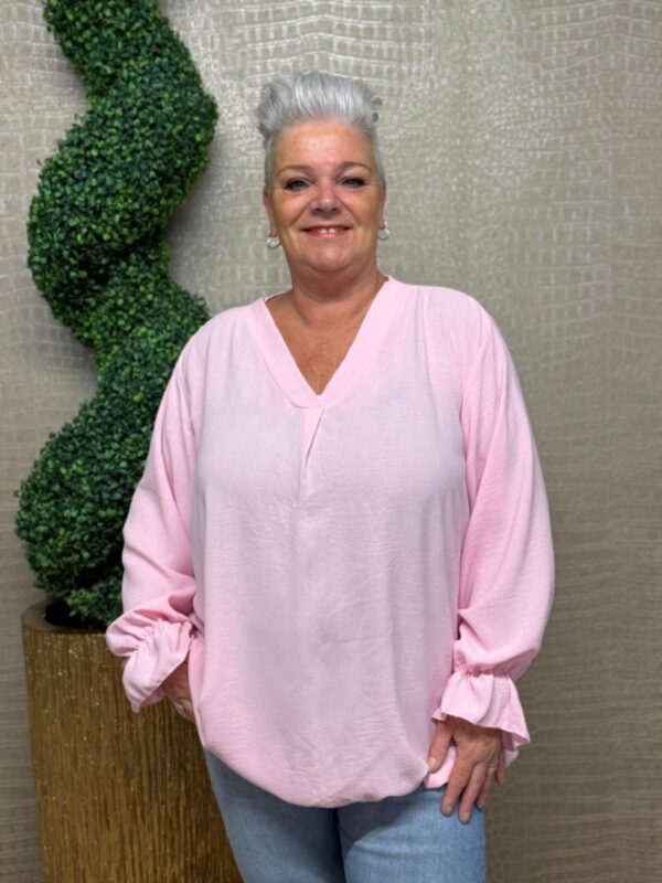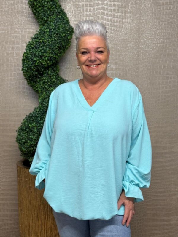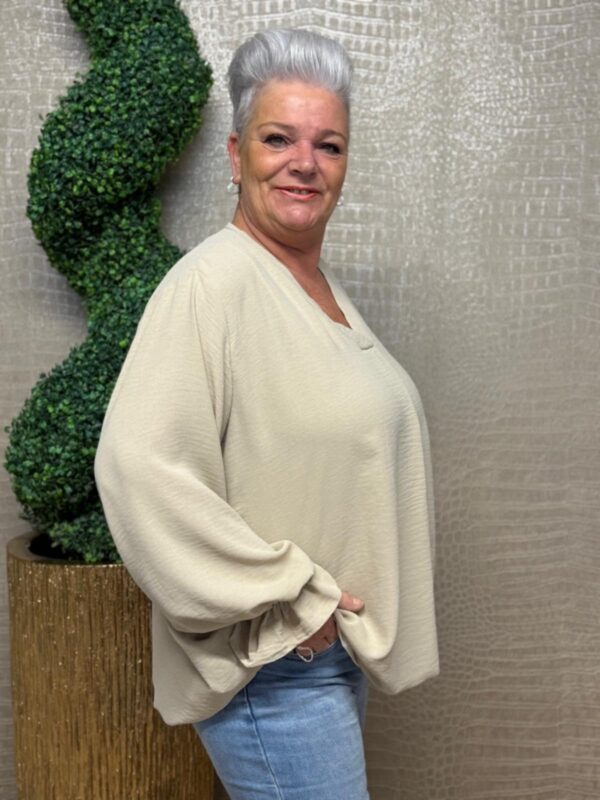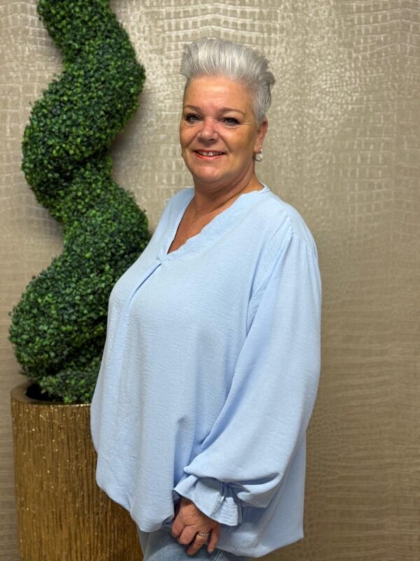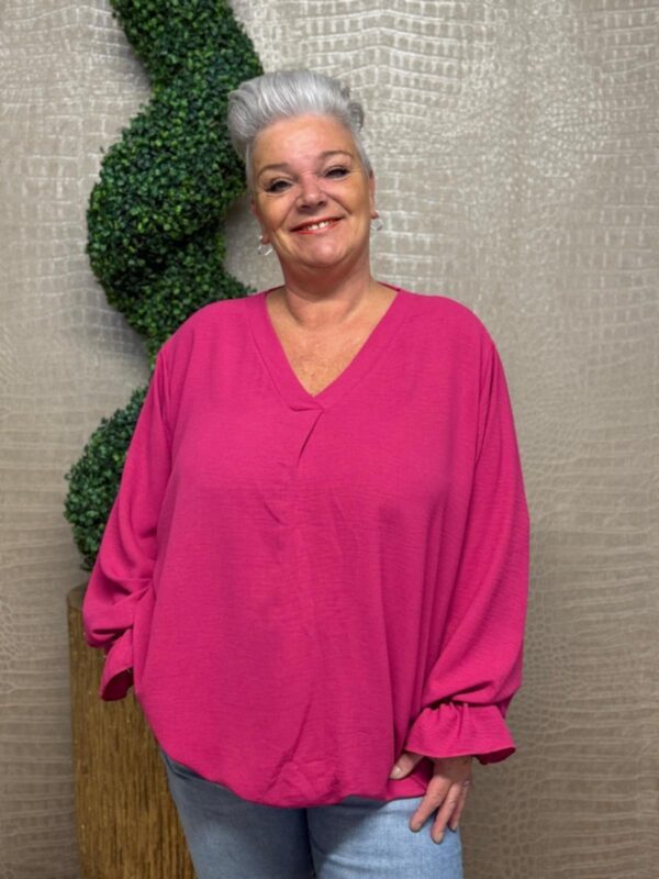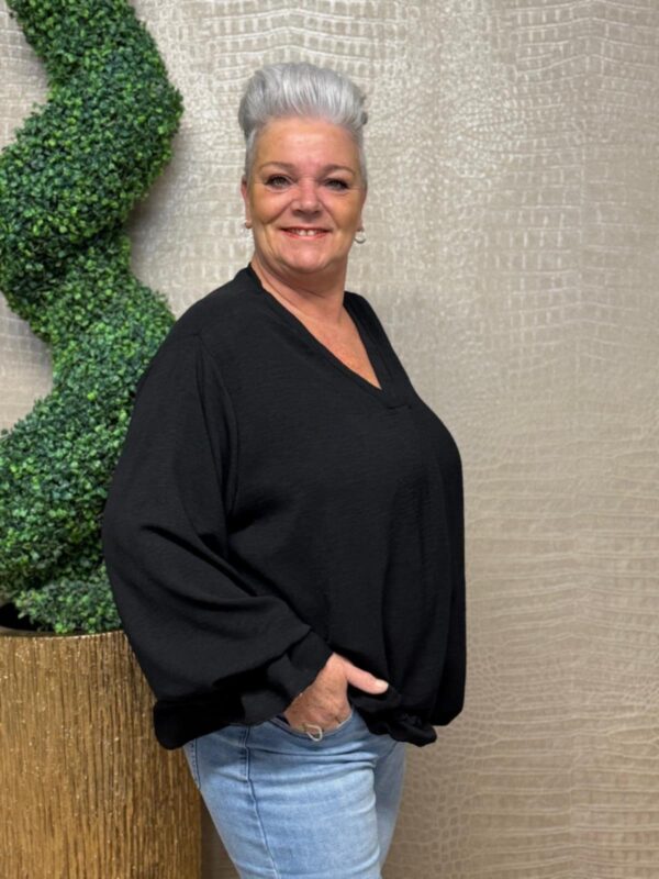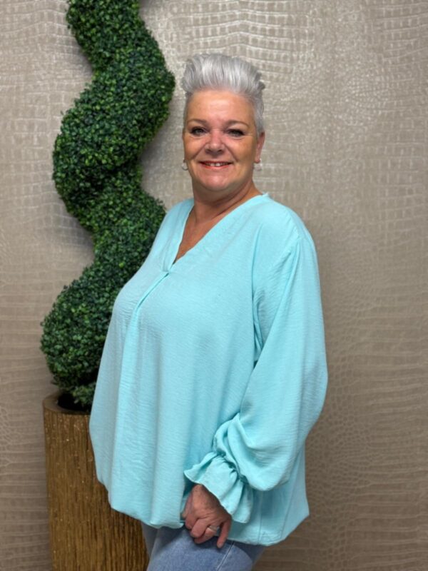 Deze ballon top is een echte voorjaarsfavoriet! De V-hals zorgt voor een elegante uitstraling, terwijl de trompetmouwen een speels en trendy accent geven. Het ballonmodel valt soepel en flatteus en zit heerlijk comfortabel. Verkrijgbaar in diverse frisse voorjaarskleuren en dankzij het one size model draagbaar tot en met maat 50/52.