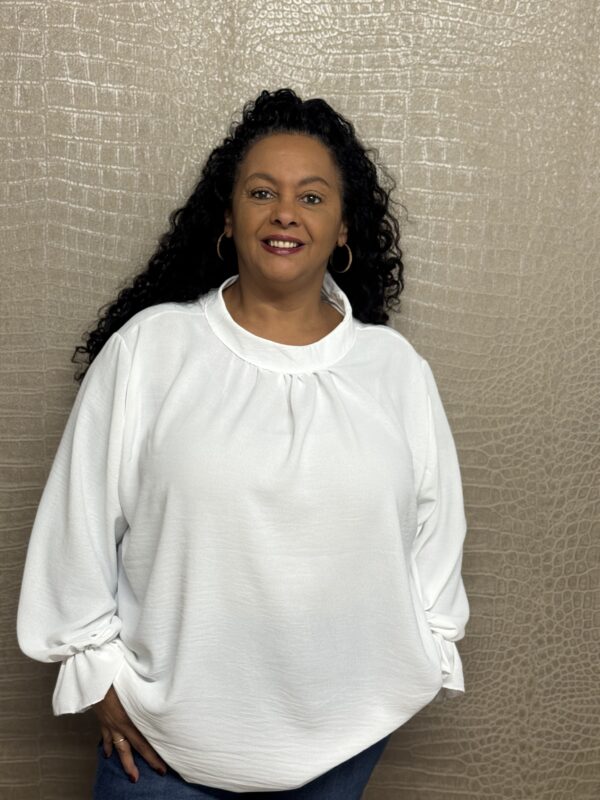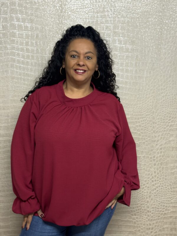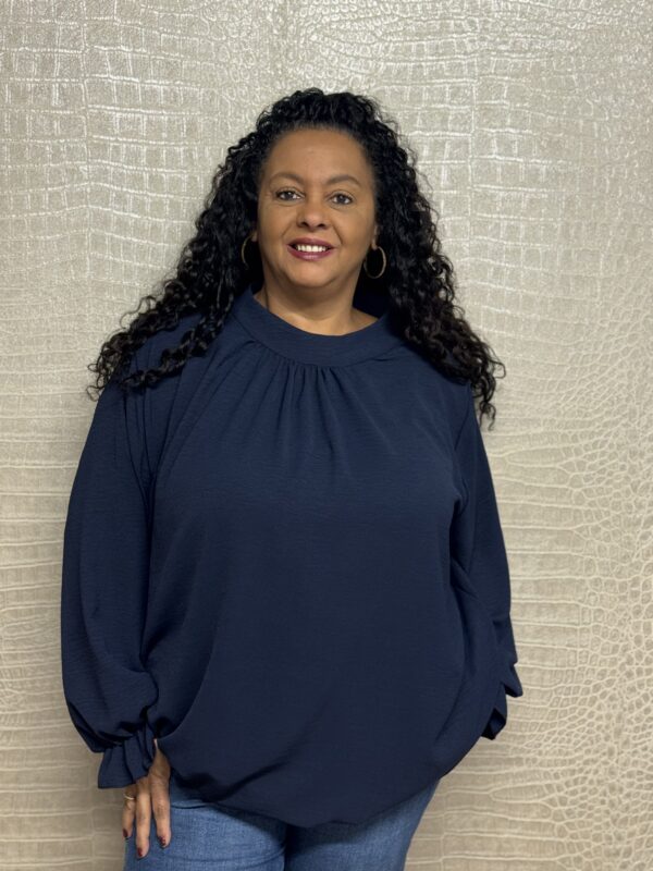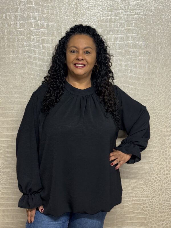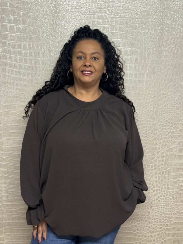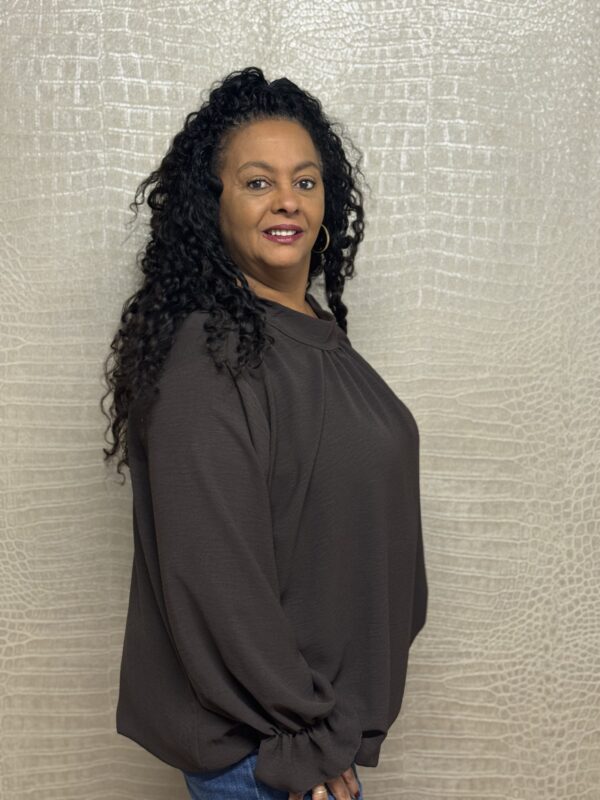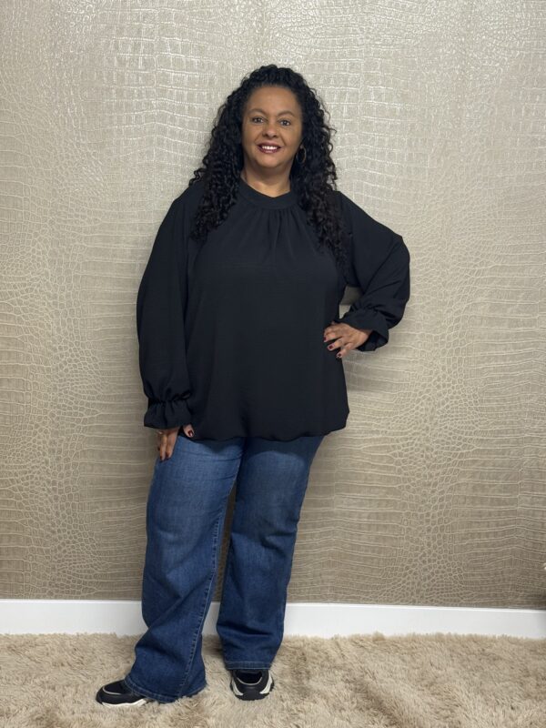 Deze stijlvolle ballon top met opstaand kraagje en roezelmouwtje is de perfecte mix van vrouwelijk, elegant en comfortabel. Het opstaande kraagje geeft een chique touch, terwijl het subtiele roezelmouwtje zorgt voor een speelse, modieuze uitstraling. Dankzij het ballonmodel valt de top prachtig soepel om het lichaam.