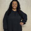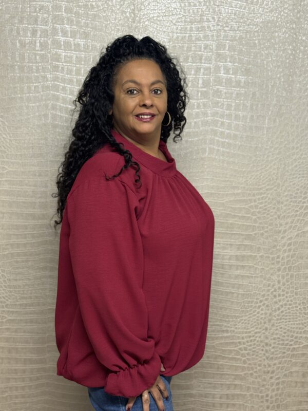 Ballon top opstaand kraagje en roezelmouwtje Mette