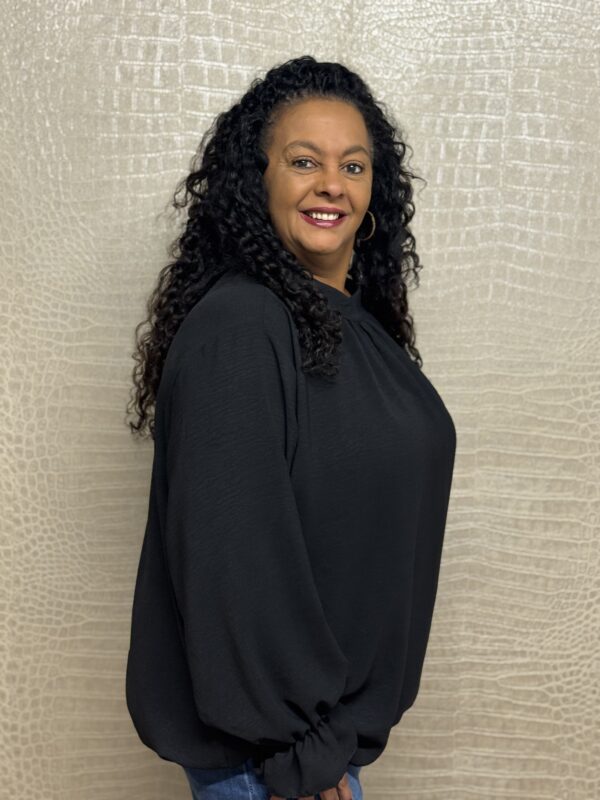 De stof rekt prettig mee en dankzij het ballonmodel heeft de top een flatterende pasvorm voor diverse lichaamstypes.
