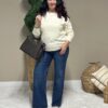 Draag de trui met een jeans voor een relaxte look of met een rok en laarzen voor een elegante outfit. Een musthave voor wie houdt van basics met een stijlvolle twist! Deze trui is één maat kan gedragen worden t/m maat 44