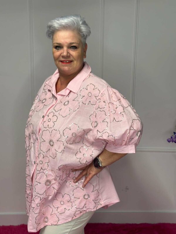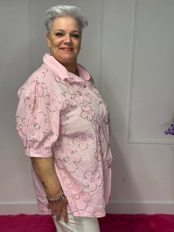 Deze blouse met pailletten is een echte eyecatcher! De subtiele pailletten geven de blouse een mooie sparkle, terwijl de zachte katoenen stof zorgt voor een comfortabel draaggevoel. Verkrijgbaar in diverse mooie kleuren, perfect voor zowel een casual als feestelijke look.