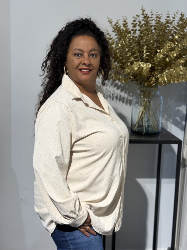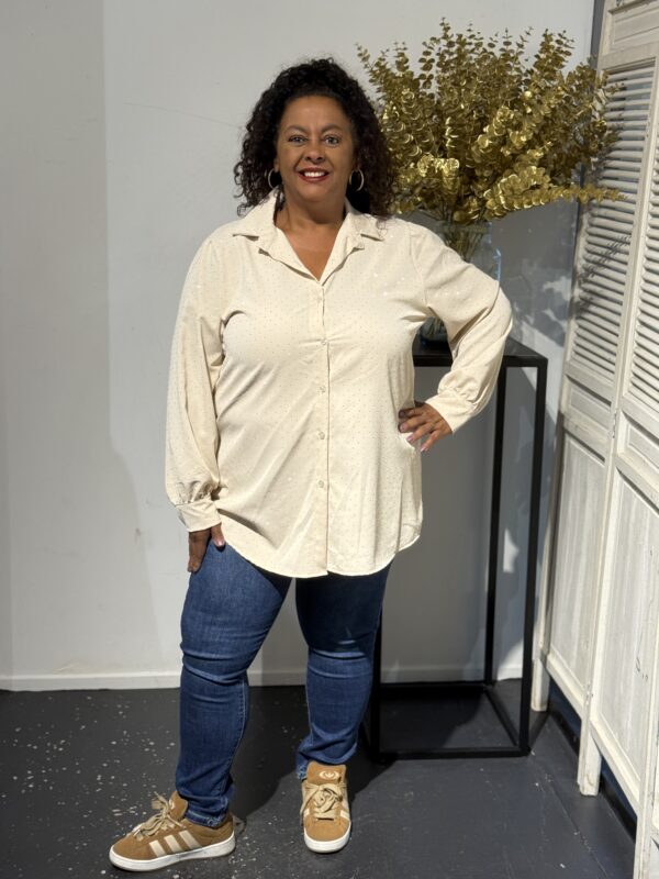 De subtiele glitters geven een stijlvolle, vrouwelijke uitstraling, terwijl de zachte, soepele stof zorgt voor optimaal draagcomfort. Dankzij het one size model, geschikt t/m maat 48, valt de blouse mooi en flatterend op ieder figuur.