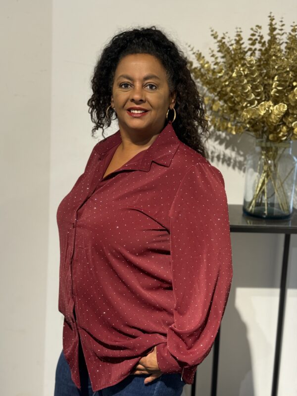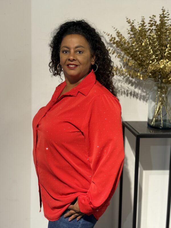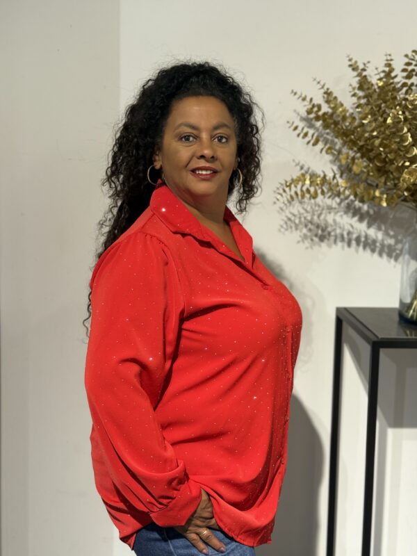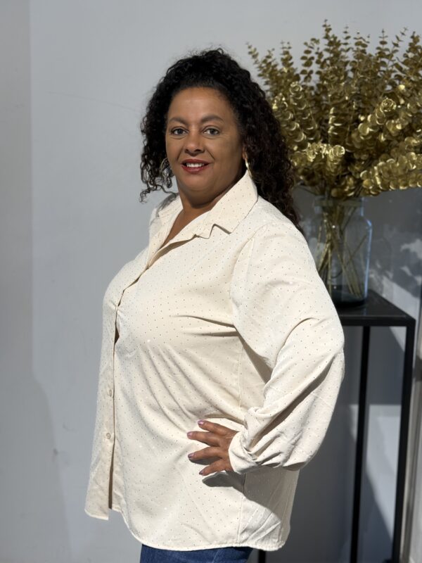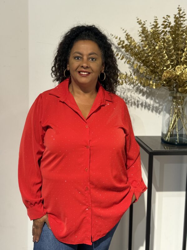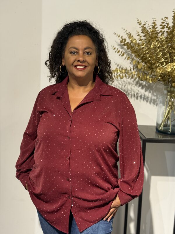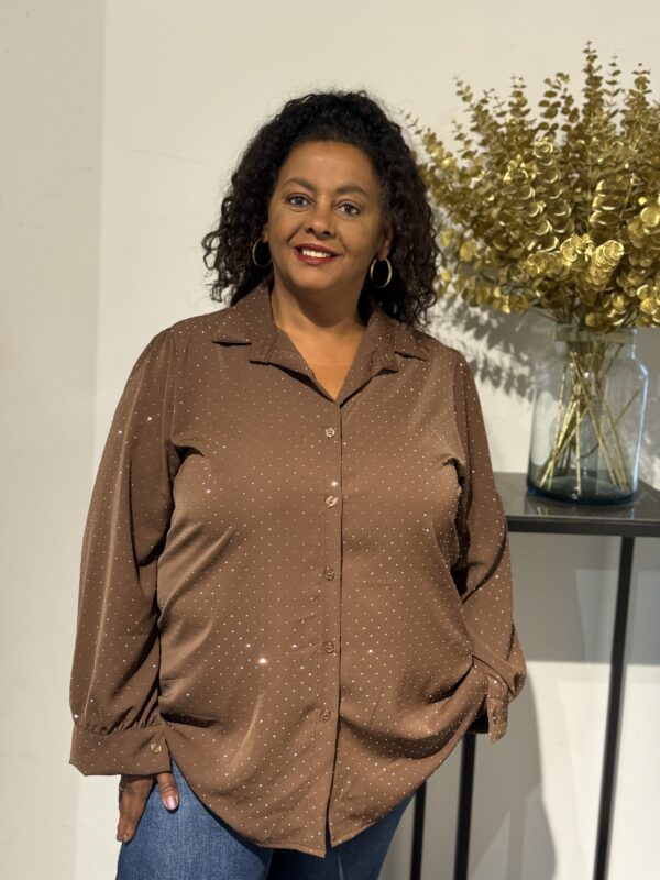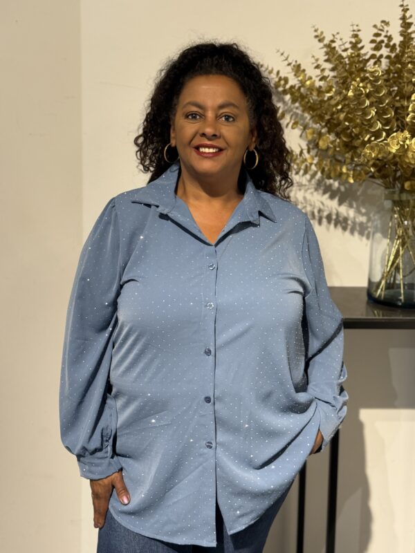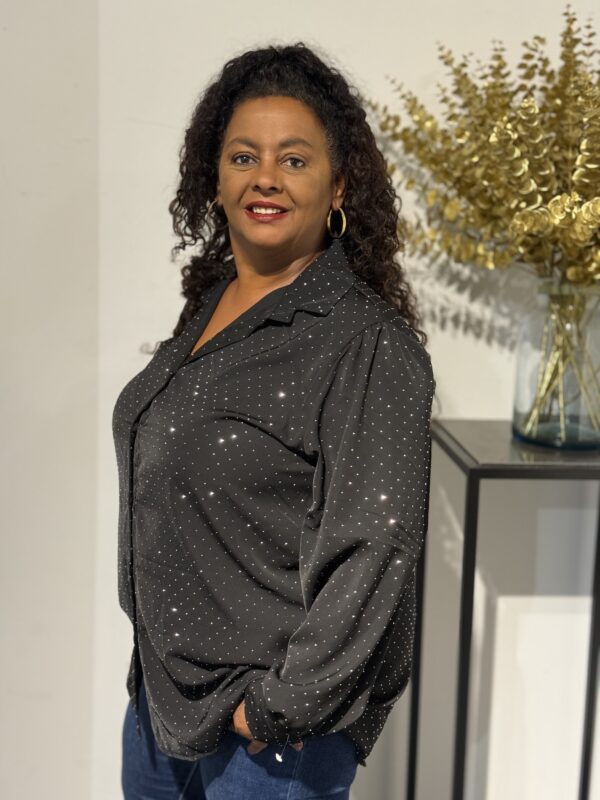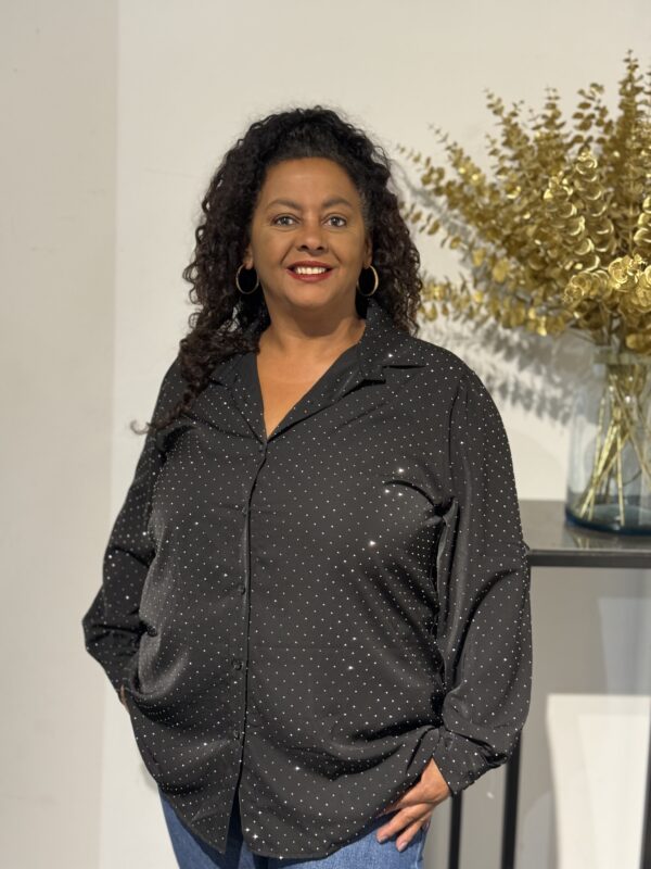 Voeg wat extra sparkle toe aan je outfit met deze elegante blouse met strass steentjes! 💎