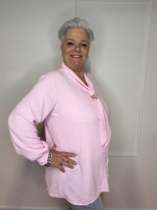 Deze blouse met stropdas geeft jouw outfit direct een elegante en modieuze uitstraling 💖 De strik/stropdas zorgt voor een stijlvolle touch en maakt deze blouse net even anders dan een basic!