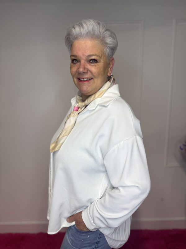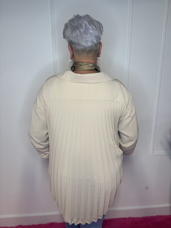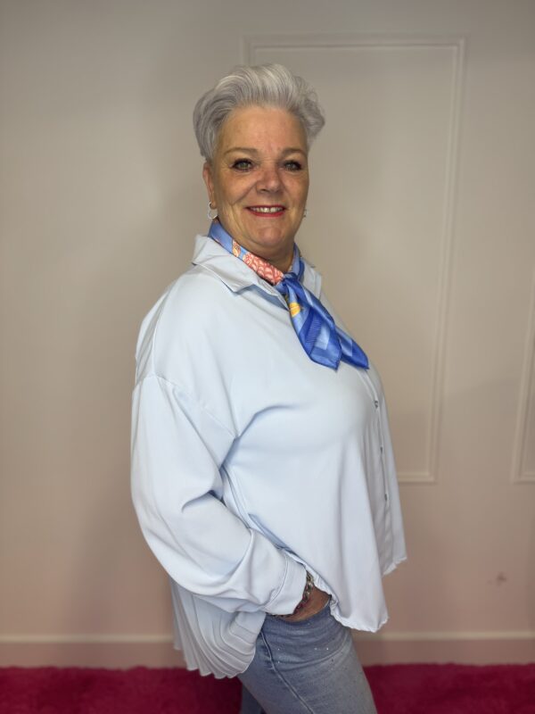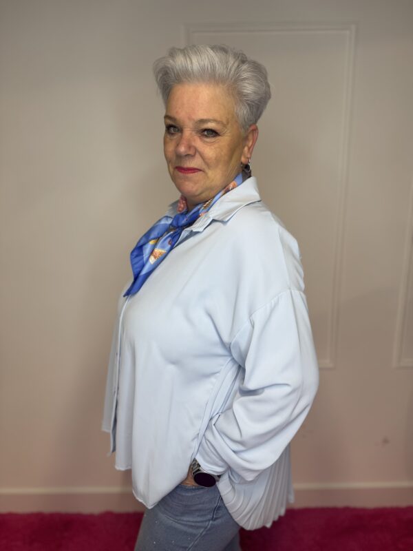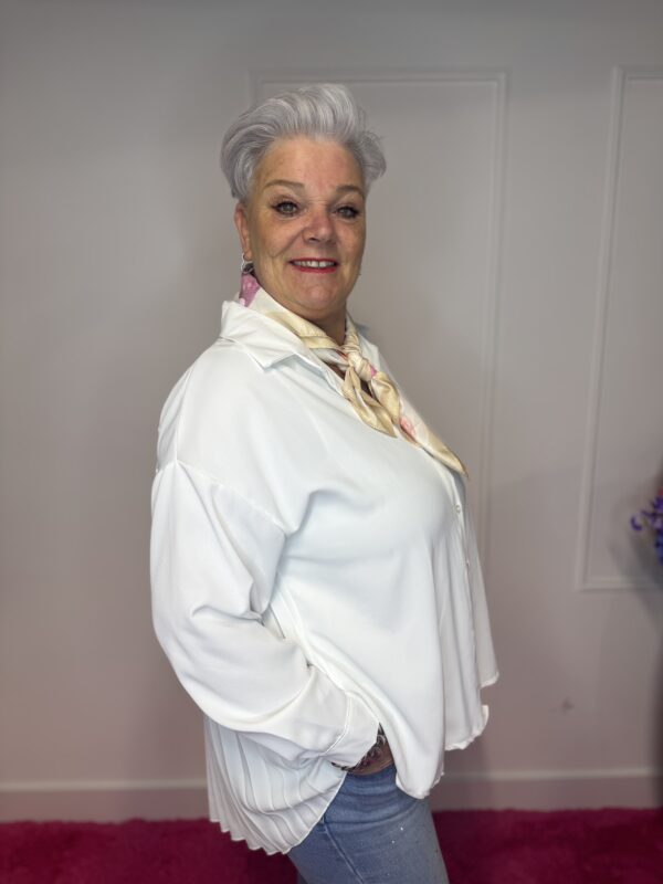 Deze blouse met plissé detail op de achterkant is een echte eyecatcher 💖 De combinatie van een rustige voorkant en een speelse, geplooide achterkant geeft jouw outfit een stijlvolle en verrassende twist!