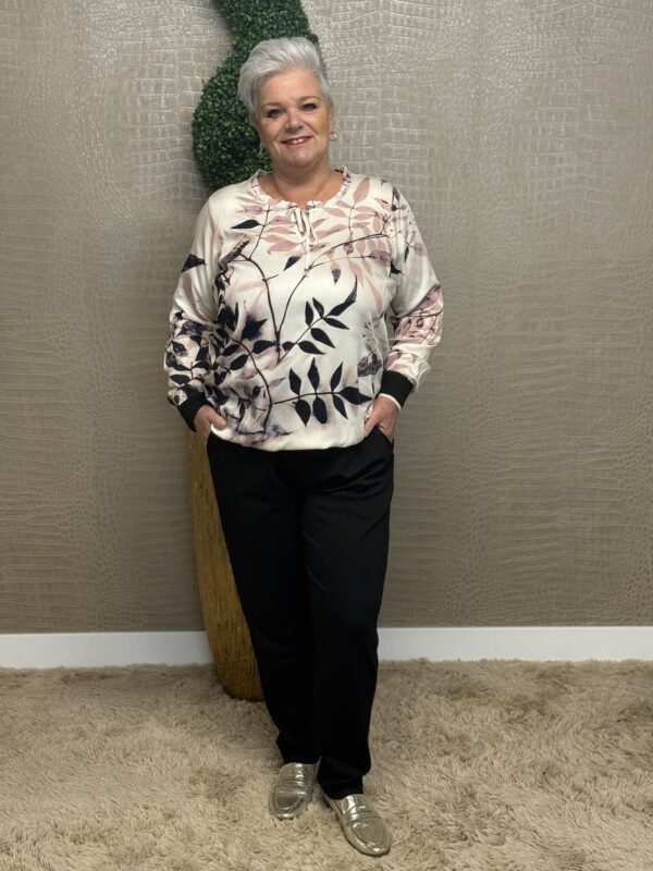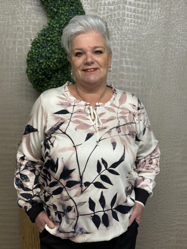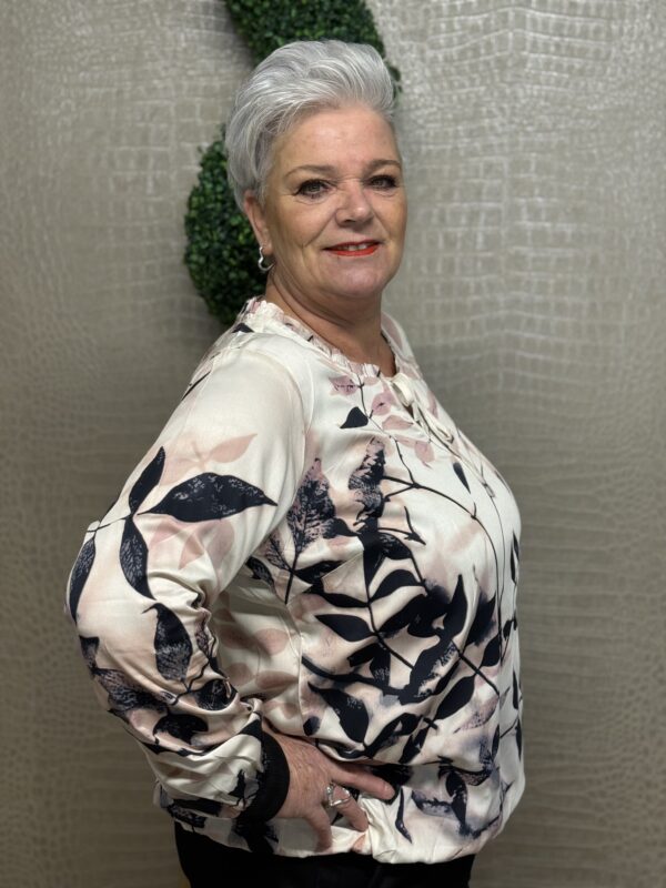 De blouse is verkrijgbaar in de maten 42/44, 46/48 en 50/52/54/56. Dankzij het gebruik van 100% viscose voelt de stof heerlijk licht en soepel aan en valt de blouse mooi om het lichaam, wat zorgt voor optimaal draagcomfort.