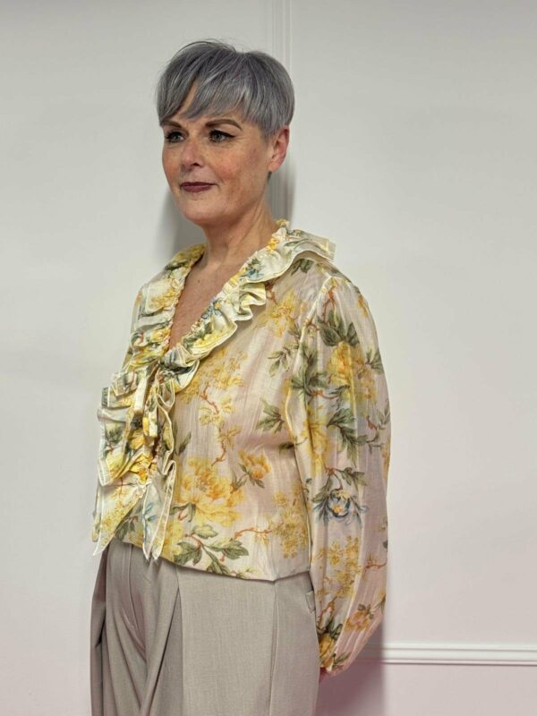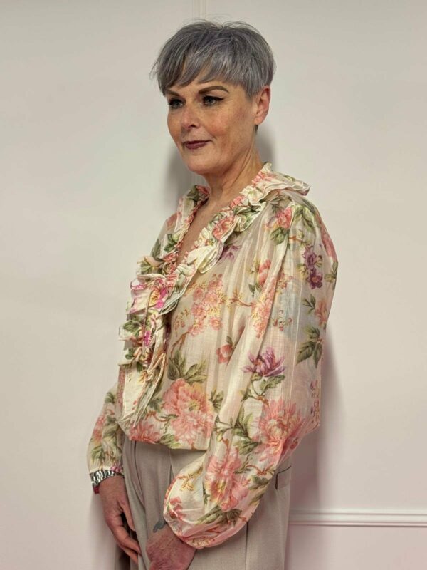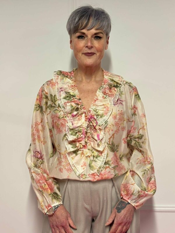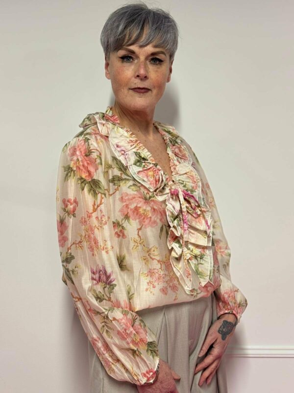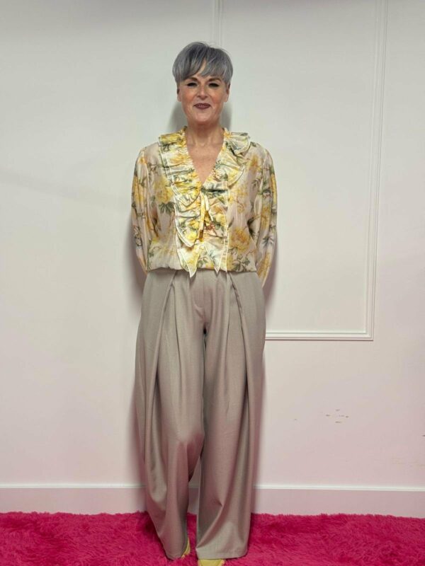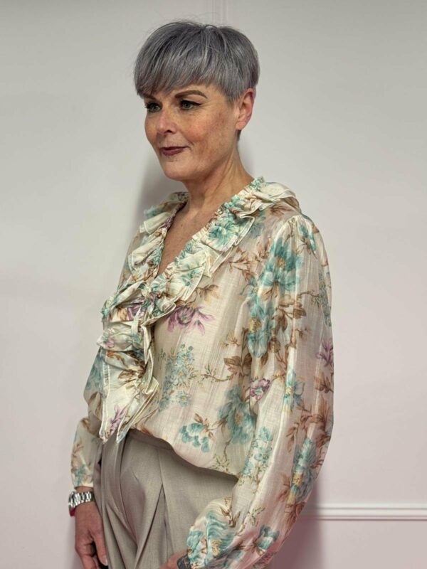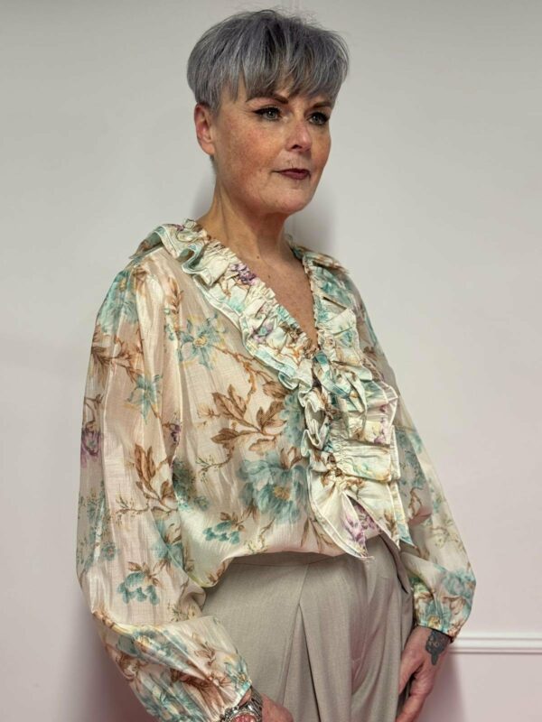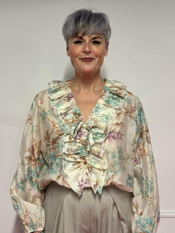 🌸 Blouse met roezel en print – vrouwelijk & speels 🌸