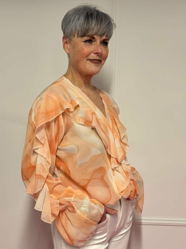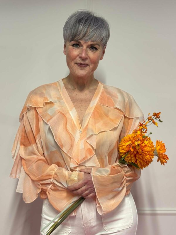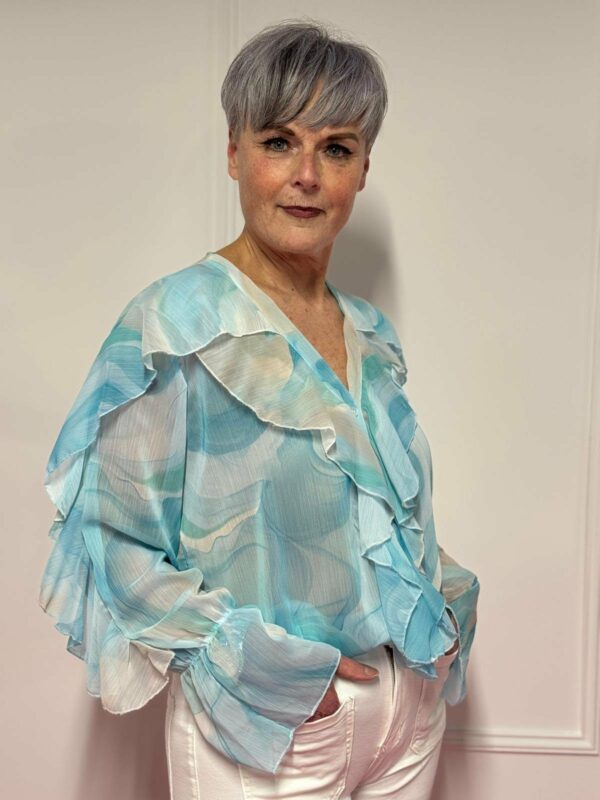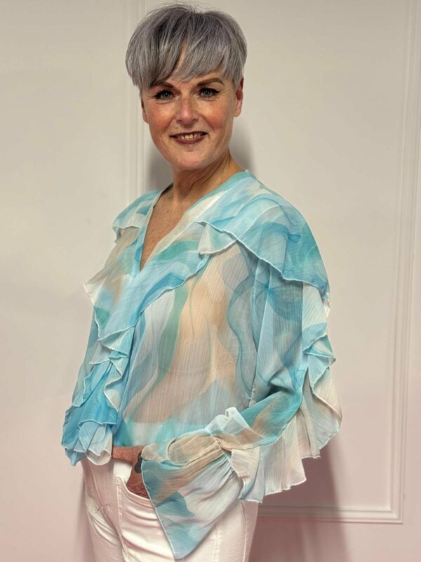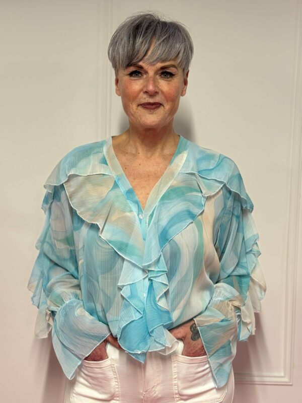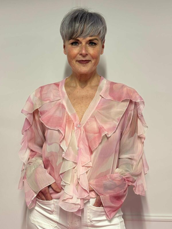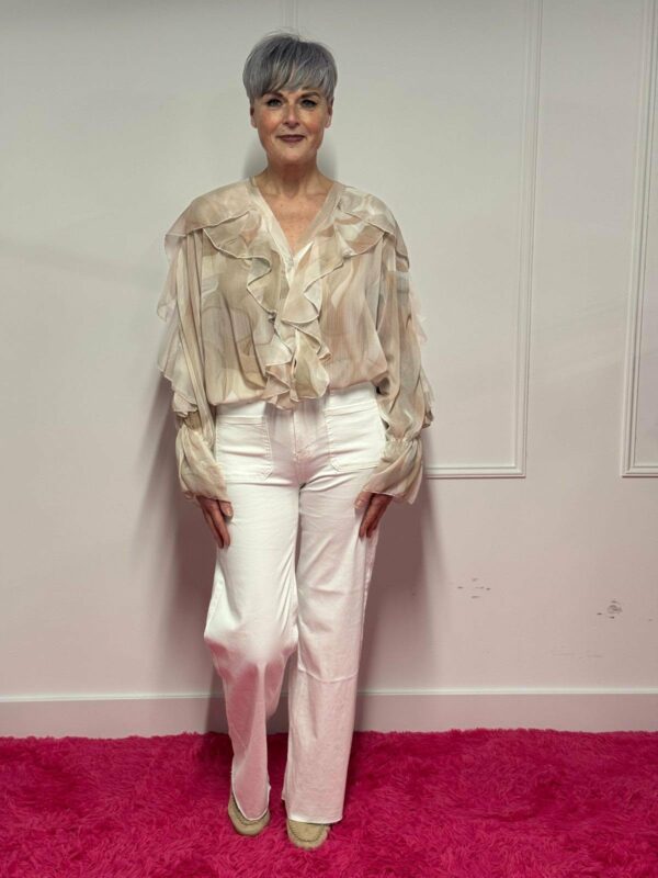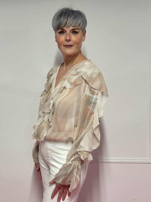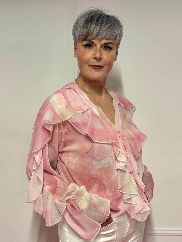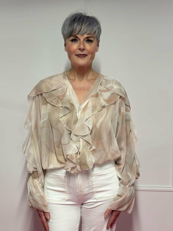 🌸 Blouse met roezel en print – vrouwelijk & speels 🌸
