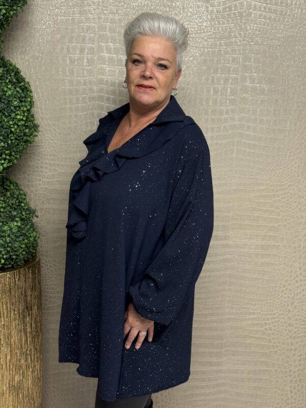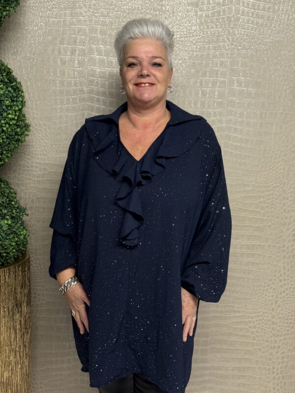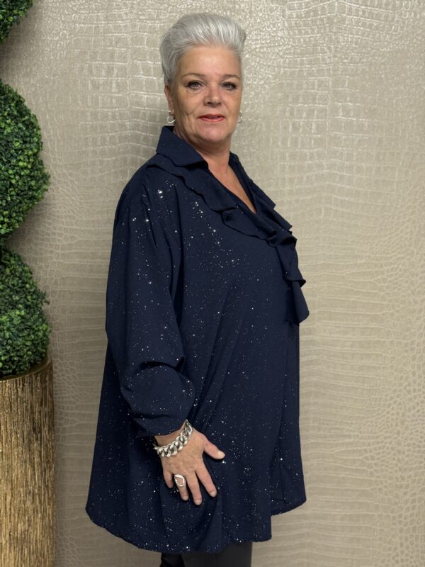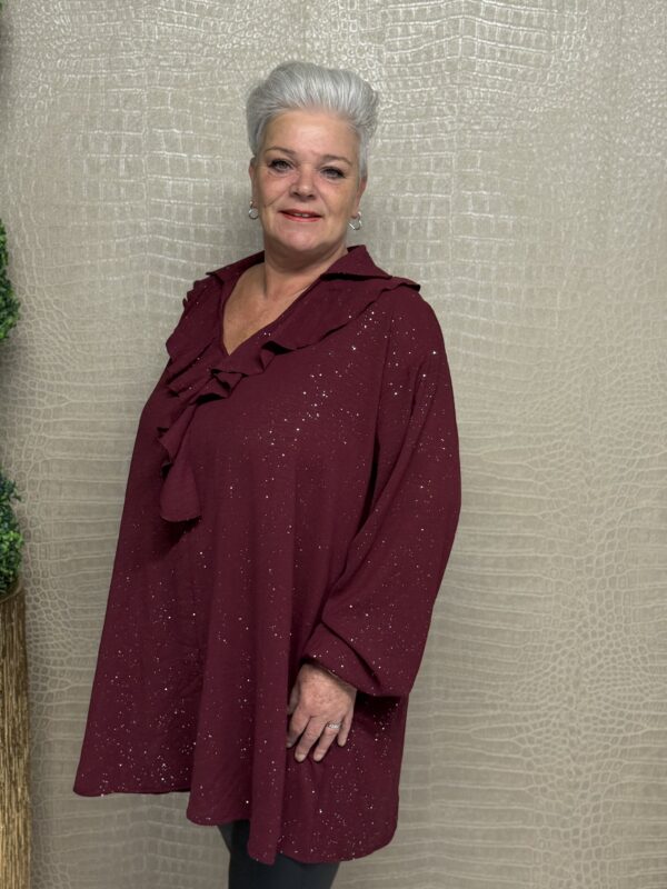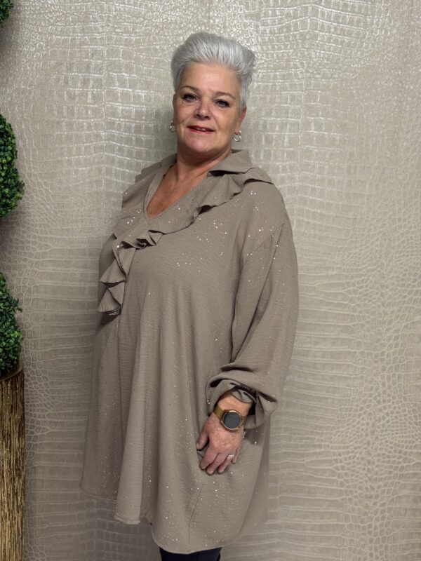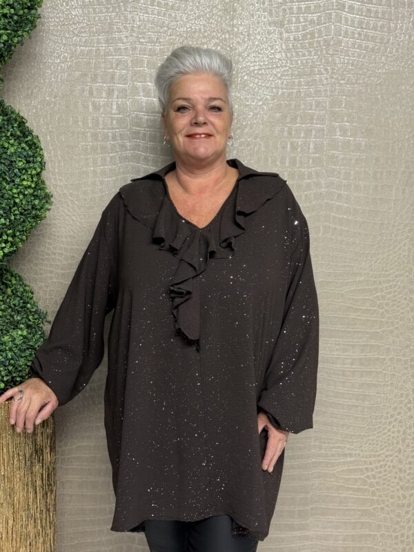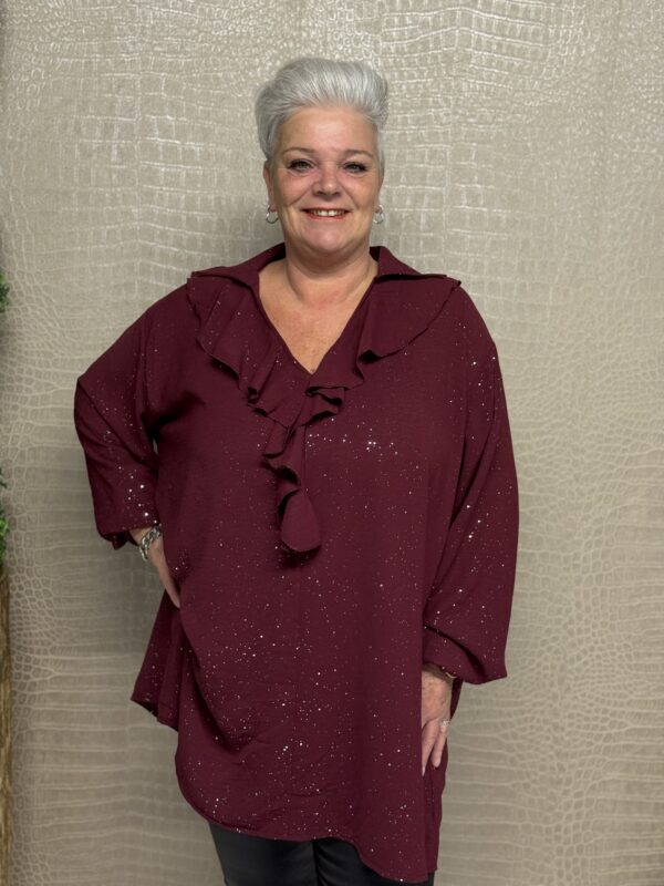 Voeg een vleugje glamour toe aan je outfit met onze Blouse Sparkling met roersel! Deze stijlvolle blouse heeft een subtiele glans en een speels roersel aan de voorkant, wat zorgt voor een flatterend en vrouwelijk effect. Dankzij de soepele stof en lichte stretch zit de blouse heerlijk comfortabel én oogt ze chic.