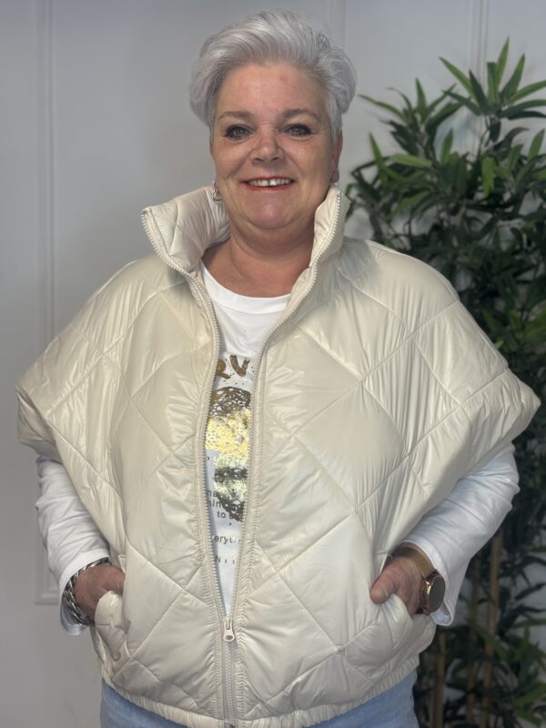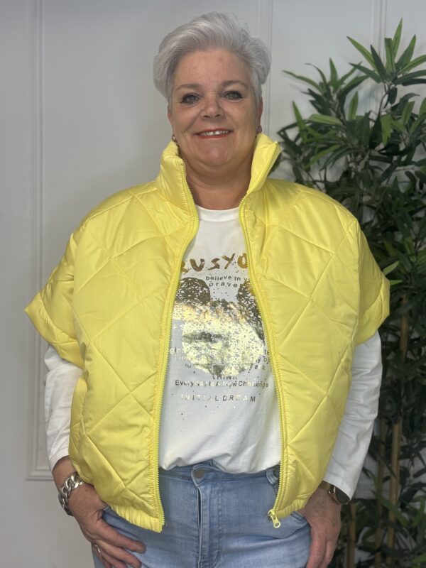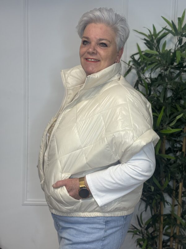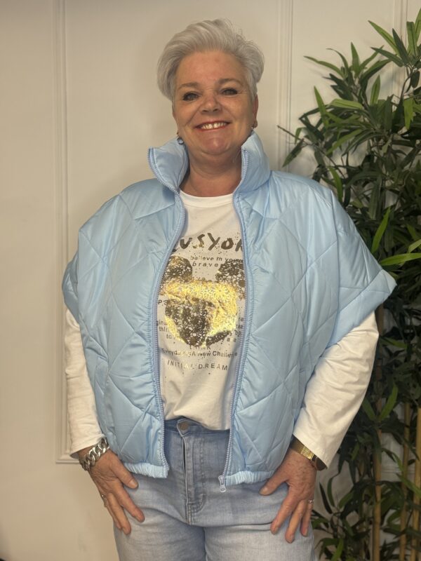 De bodywarmer is gemaakt van 95% polyester en 5% elastan, waardoor hij soepel valt en comfortabel met je meebeweegt. De lichte stretch zorgt voor een fijne pasvorm zonder strak te zitten. Ideaal om te dragen over een blouse, trui of basic top voor een stijlvolle laagjeslook.