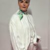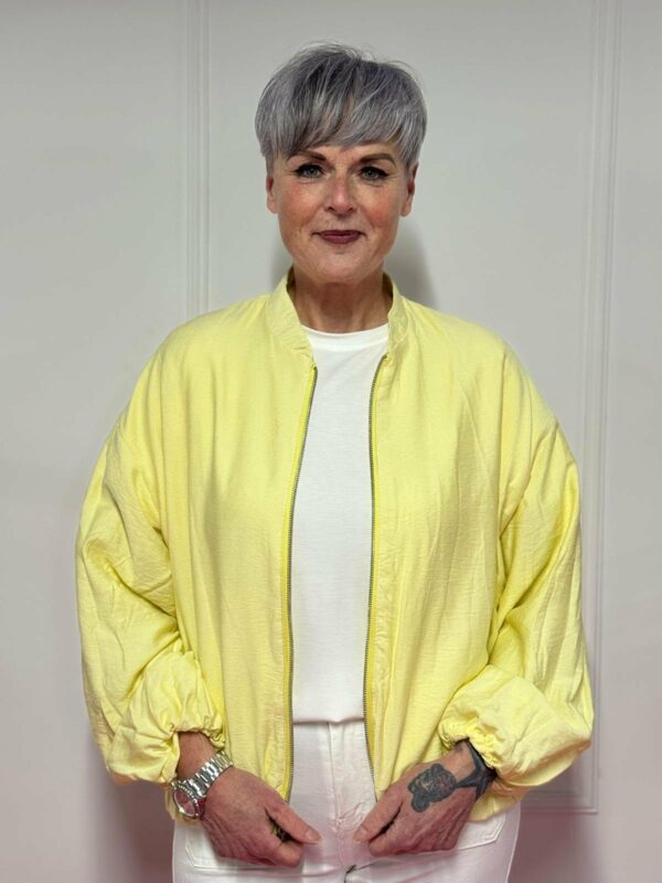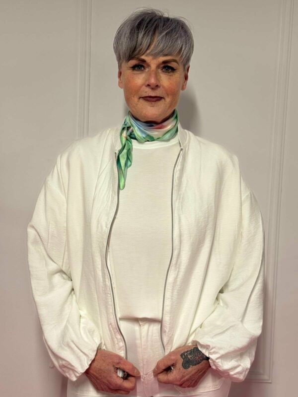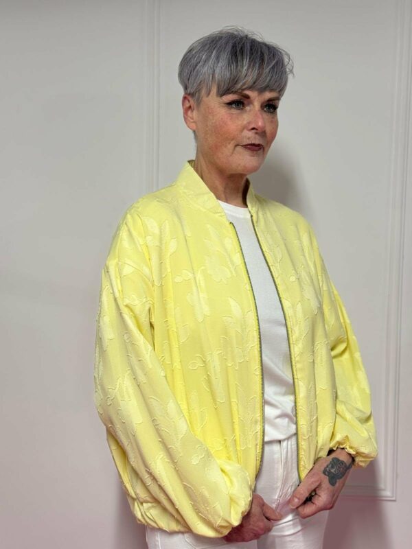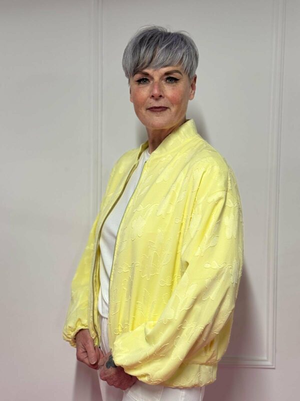 Gemaakt van 87% viscose en 13% polyamide, voelt het jasje zacht en licht aan, met een mooie soepelheid. Het one size model kan gedragen worden tot en met maat 44/46.