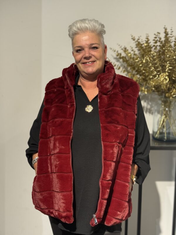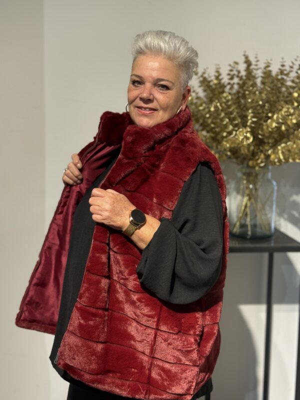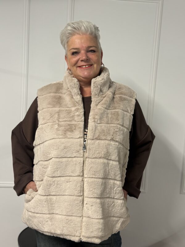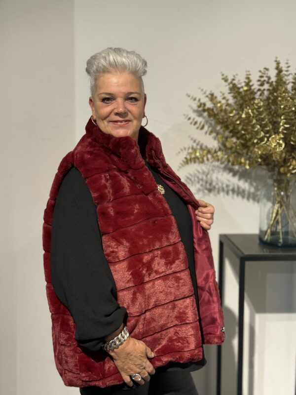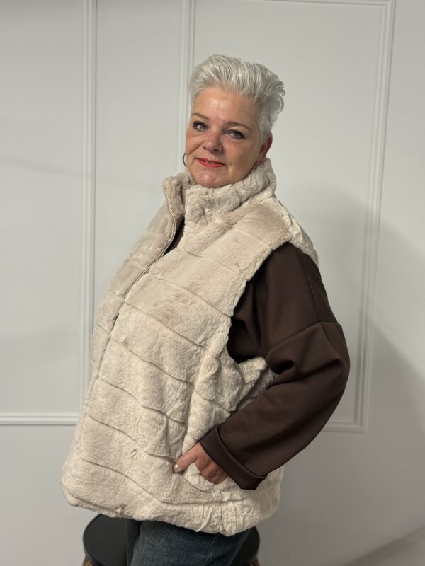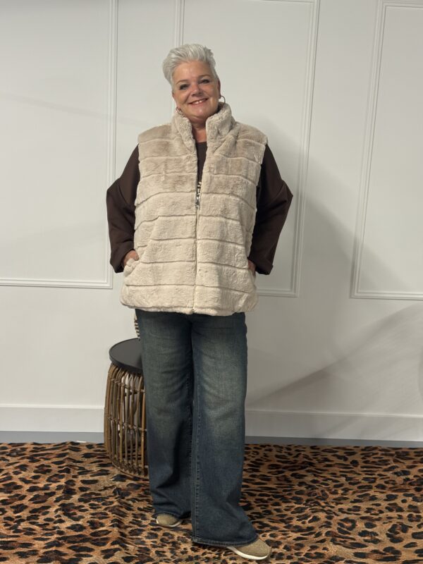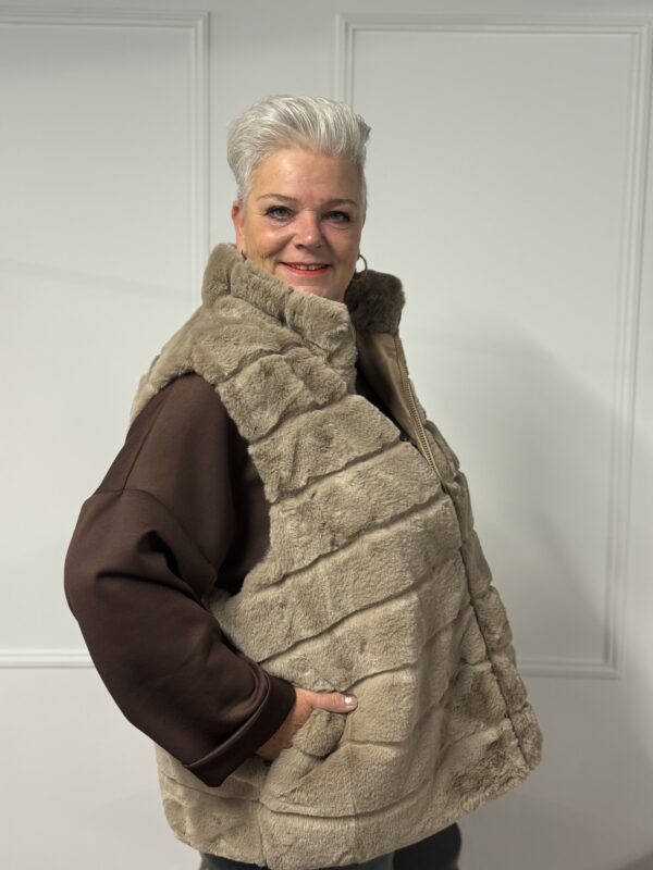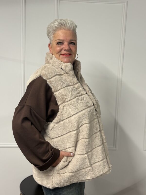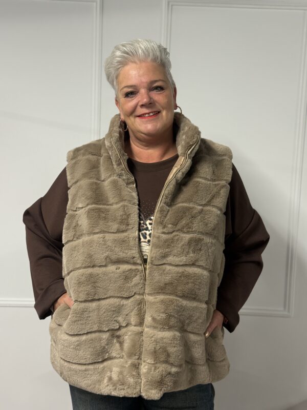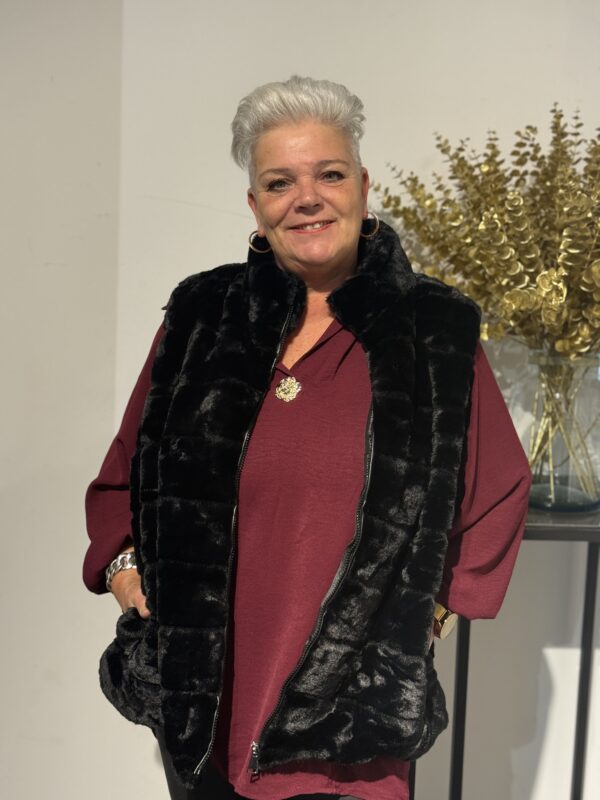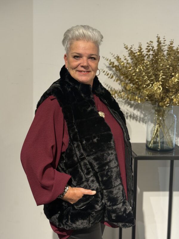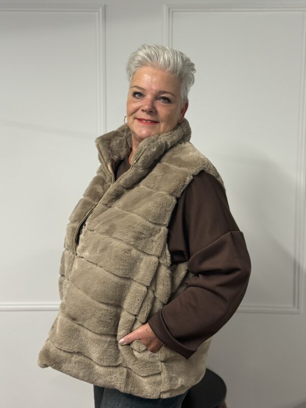 Dit trendy bont gillet is de perfecte aanvulling op jouw outfit! De zachte, fluffy stof zorgt voor een luxe uitstraling én houdt je lekker warm tijdens de koelere dagen. Dankzij de handige rits sluit het gillet mooi aan en is het eenvoudig te combineren met een blouse, trui of jurk.