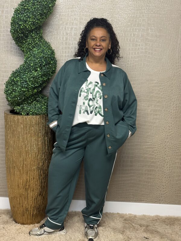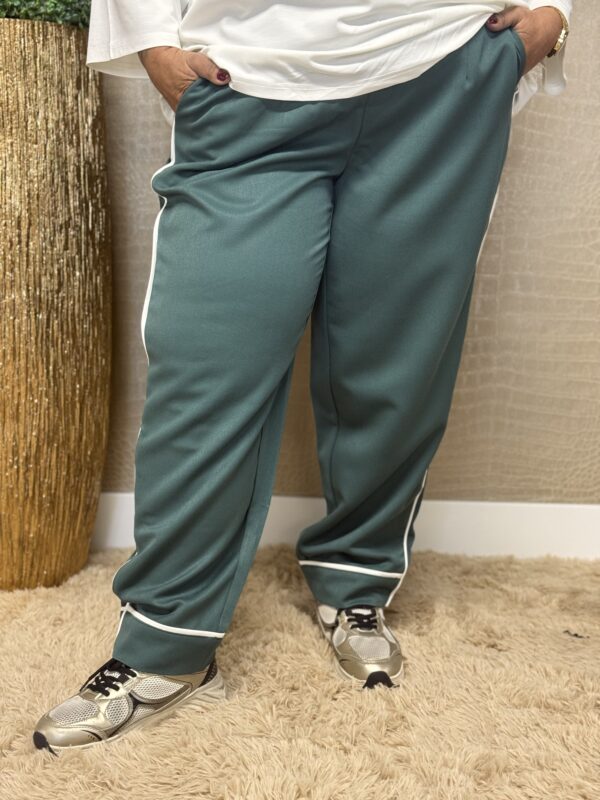 De broek is uitgevoerd in de kleur groen en verkrijgbaar in de maten 42/44, 46/48, 50/52 en 54/56. Dankzij de soepele stof met stretch biedt de broek een fijne pasvorm en optimaal draagcomfort.