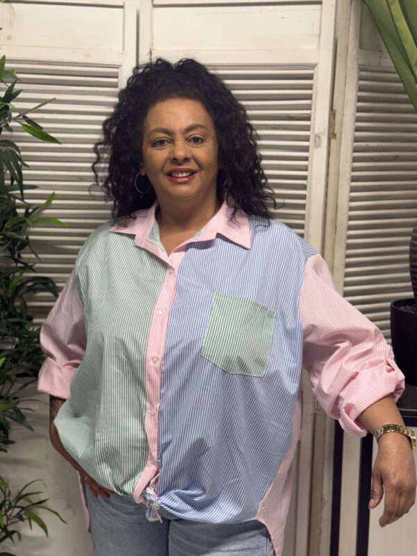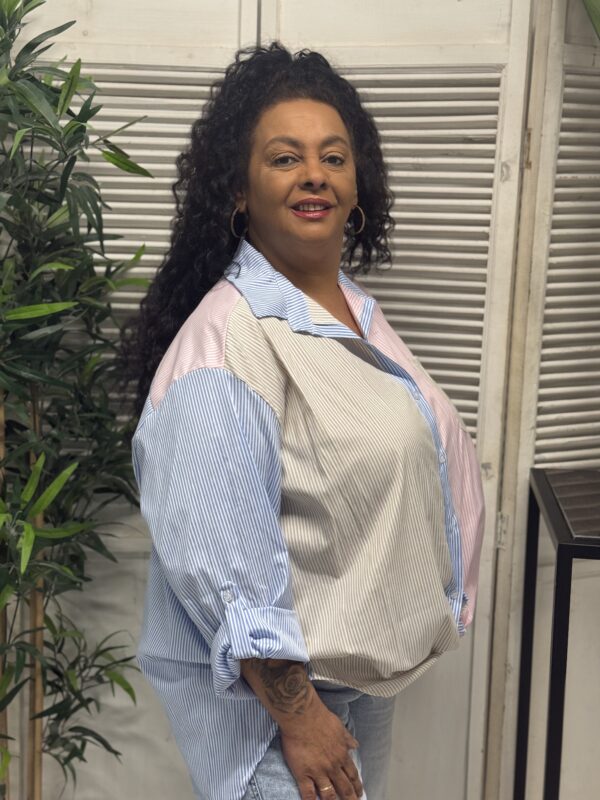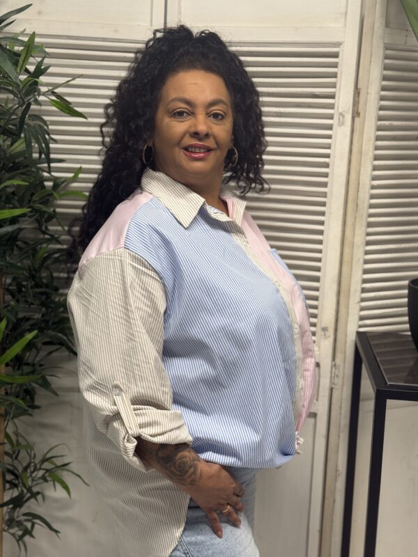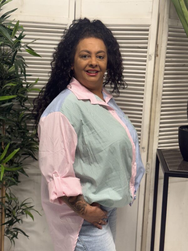 De blouse is gemaakt van een zachte katoenmix met stretch, waardoor hij heerlijk comfortabel zit en soepel om het lichaam valt. Dankzij de ruime, losvallende pasvorm is hij geschikt voor meerdere maten en draagbaar tot en met maat 50/52. Ideaal als luchtige blouse, maar ook leuk open te dragen als overshirt of laagje over een top 👖