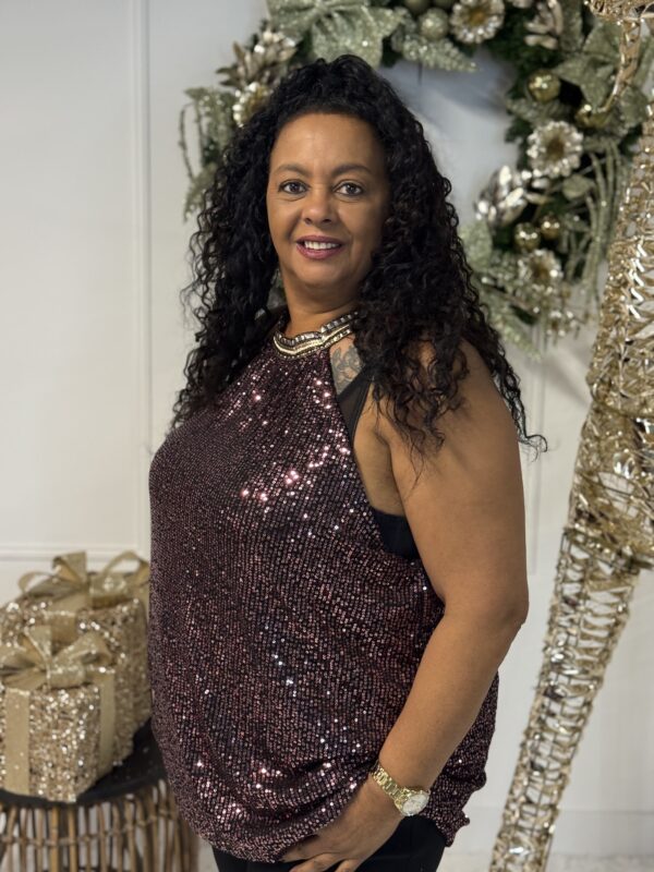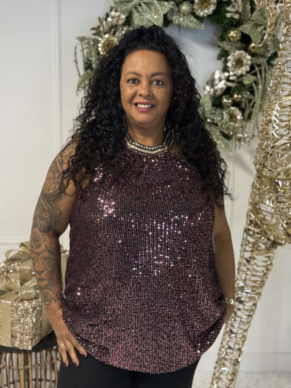 Shine all night met onze prachtige gevoerde halter top met pailletten! Deze top is een echte eyecatcher en perfect voor feestjes, etentjes, avondjes uit of elke gelegenheid waar je wilt stralen. De halterhals geeft een chique, elegante uitstraling, terwijl de voering zorgt voor optimaal draagcomfort. Verkrijgbaar in meerdere schitterende kleuren.