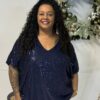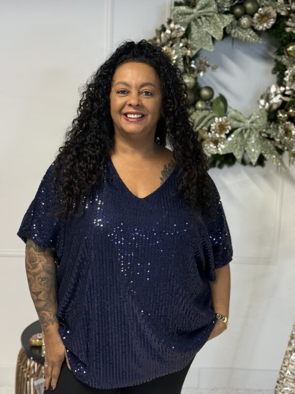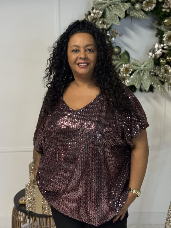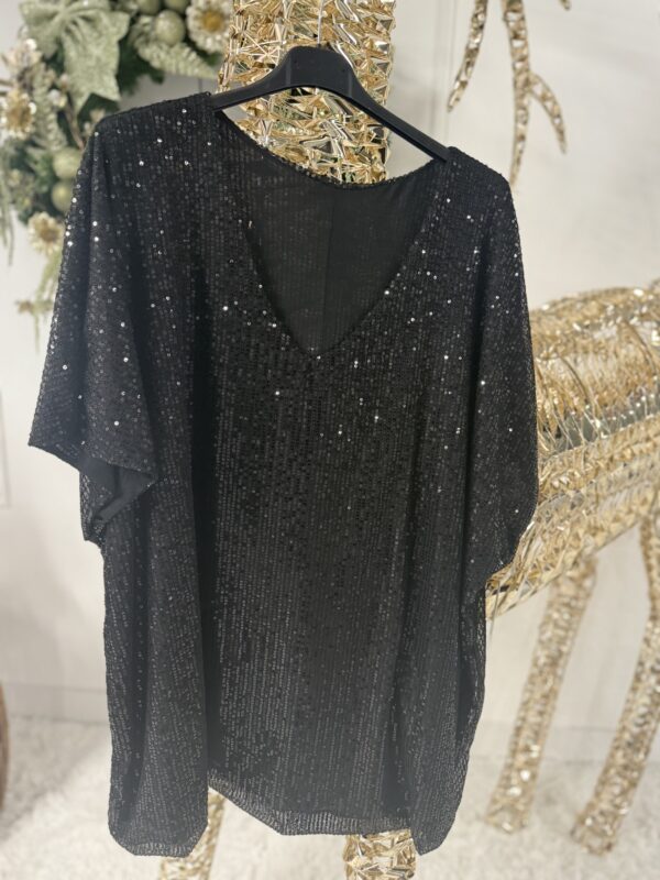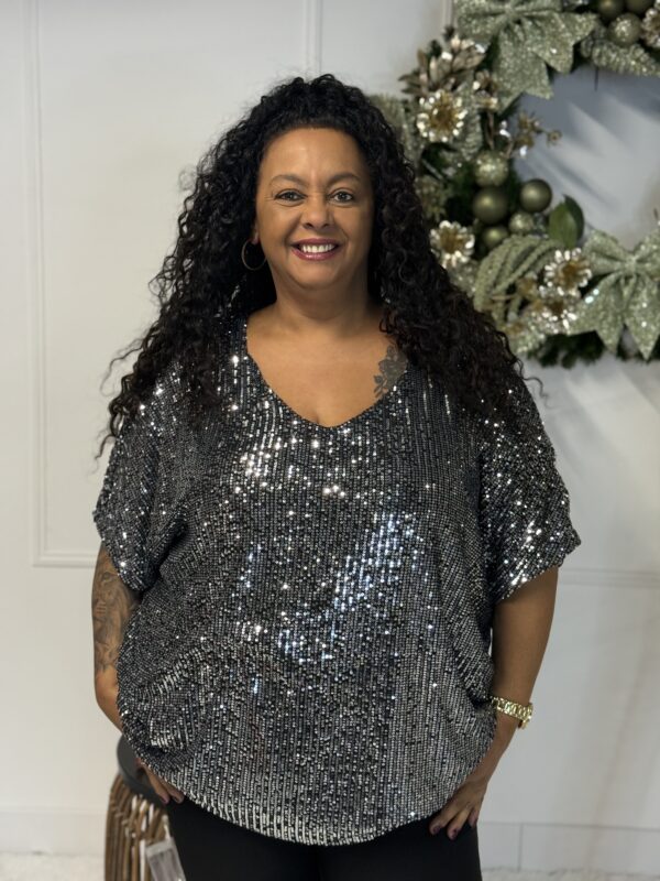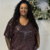 Deze sprankelende top is one size en te dragen tot maat 50/52.