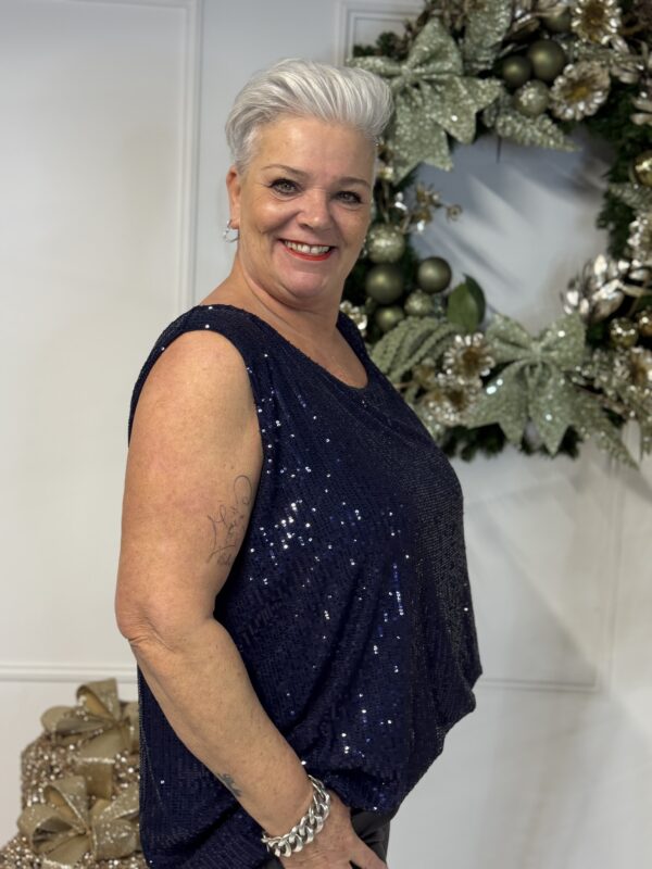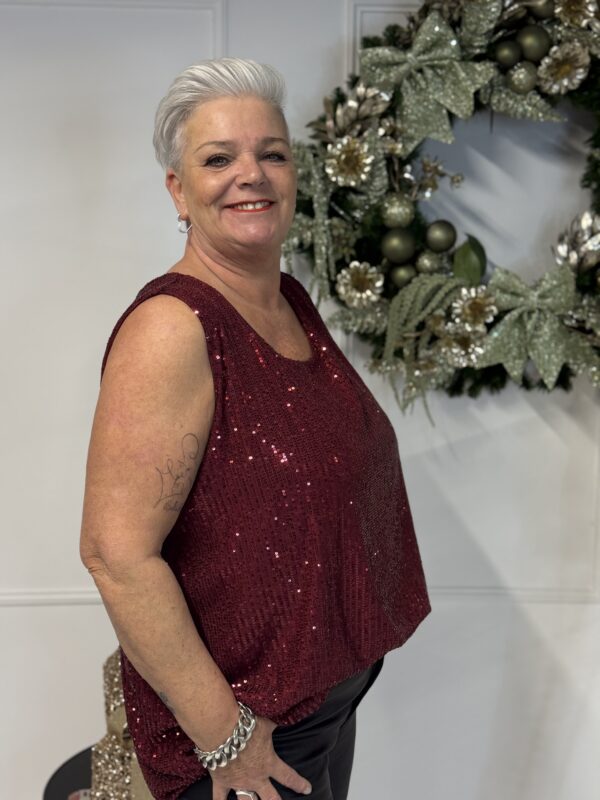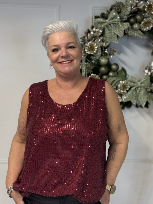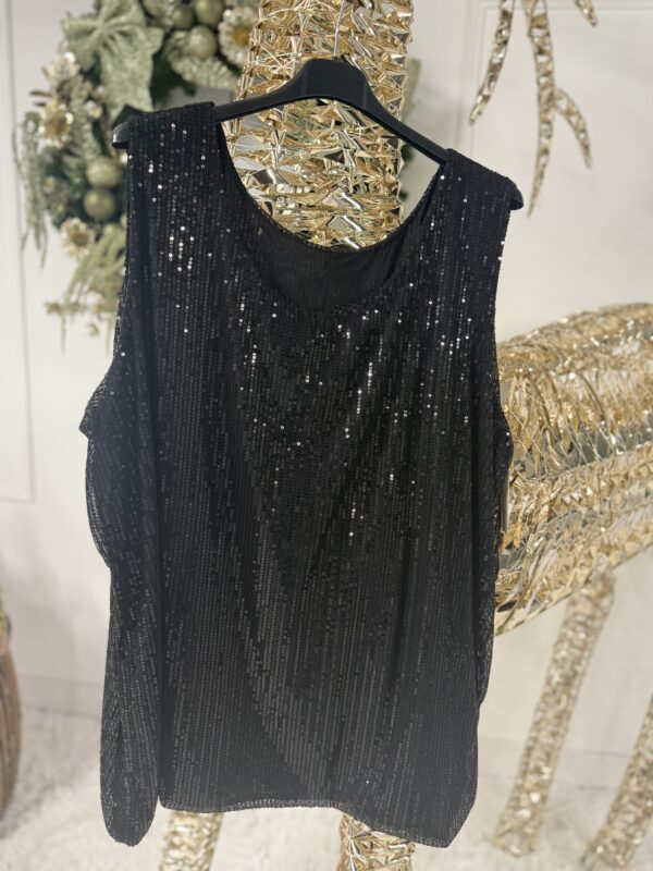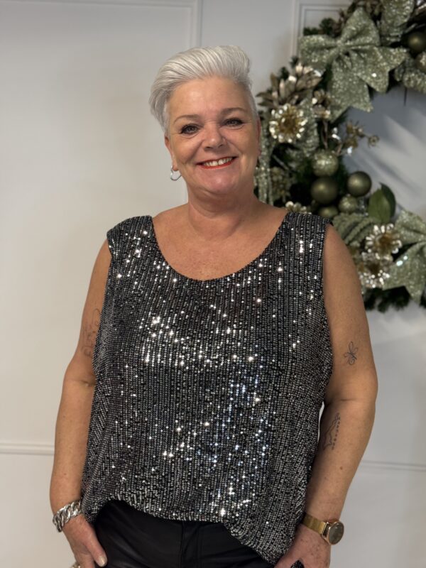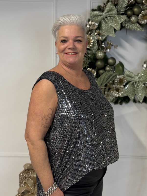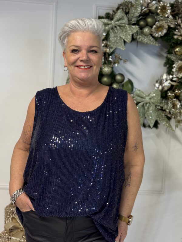 Voeg instant glamour toe aan je outfit met onze schitterende mouwloze pailletten top. Dankzij de volledig gevoerde binnenkant zit de top comfortabel, terwijl de sprankelende pailletten zorgen voor een luxe, feestelijke look. Perfect voor feestdagen, uitgaan of elke gelegenheid die een beetje extra sparkle verdient. Verkrijgbaar in meerdere prachtige kleuren.