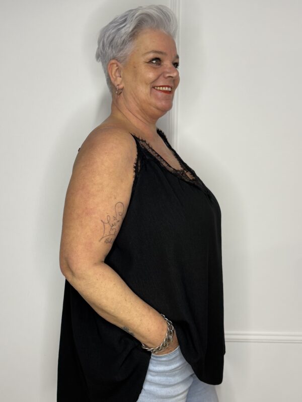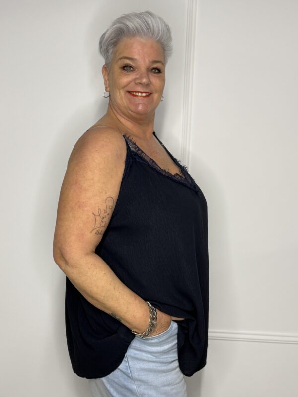 Dankzij de verstelbare bandjes pas je het hemdje eenvoudig aan naar jouw ideale lengte en pasvorm. De stof bestaat uit 65% viscose en 35% polyester, waardoor het hemdje zacht, soepel en licht aanvoelt op de huid. Ideaal om los te dragen op warme dagen of als basis onder een blouse, vest of jasje.