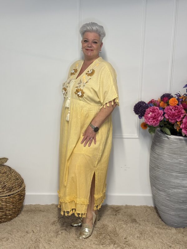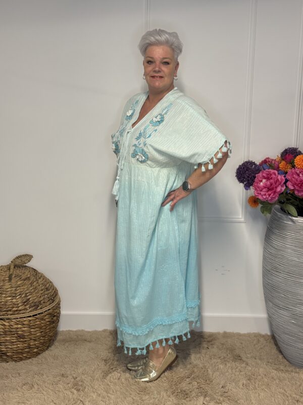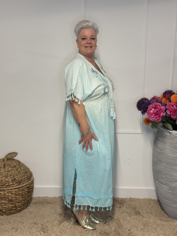 Dankzij het one size model is de jurk draagbaar tot en met maat 48 en valt hij flatterend om het lichaam. Verkrijgbaar in verschillende kleuren, zodat je altijd jouw favoriete zomertint kunt kiezen 🎨
