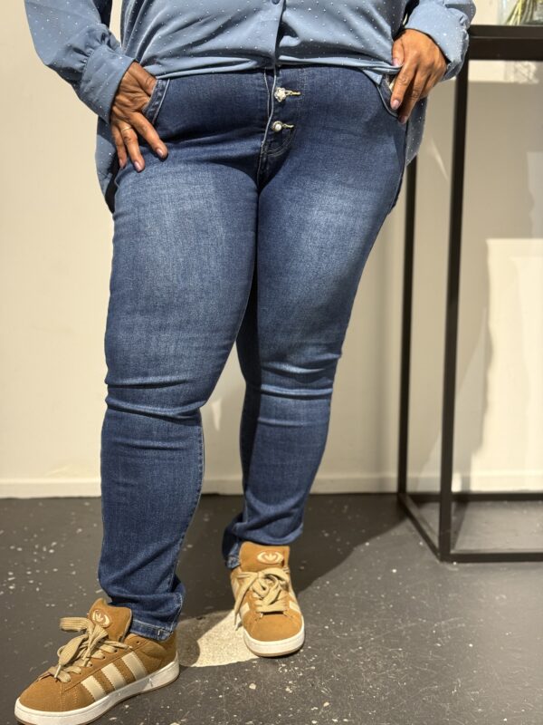 Deze jeans van G-Smack combineert een moderne look met een perfecte pasvorm. De broek is voorzien van een opvallende sluiting met 4 mooie knopen, waardoor hij direct een stijlvolle touch krijgt. Verkrijgbaar in de maten 44 t/m 54, zodat hij geschikt is voor verschillende lichaamsmaten.