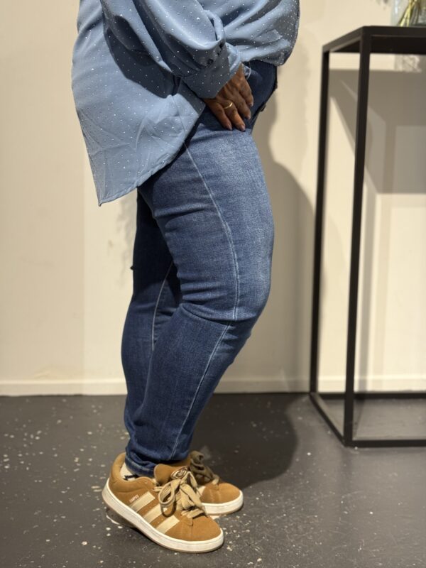 Het materiaal van 63% katoen, 32% polyester en 2% elastan zorgt voor een comfortabele stretch en een fijne draagervaring, terwijl de jeans zijn vorm behoudt. Perfect te combineren met een blouse, trui of shirt voor een casual of iets chiquer look.