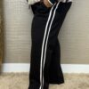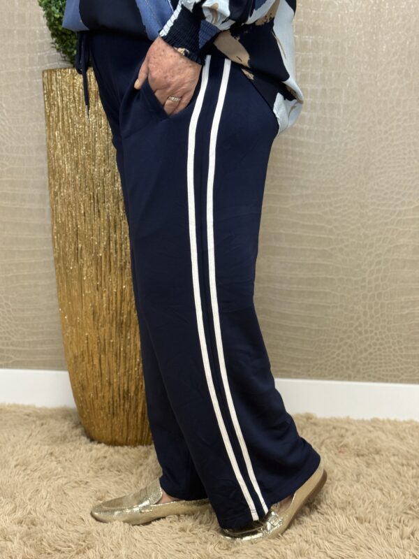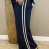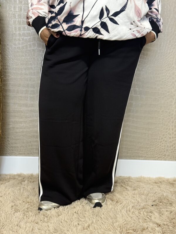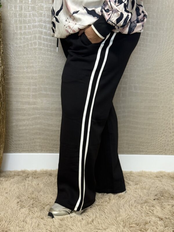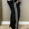 Deze comfortabele jog broek met streep is perfect voor wie stijl en draagcomfort wil combineren. De sportieve streep aan de zijkant geeft de broek een moderne en trendy uitstraling, terwijl het jog model zorgt voor een relaxte pasvorm. Ideaal voor zowel een casual outfit als een sportieve look.