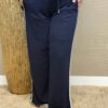 De jog broek is verkrijgbaar in de kleuren donkerblauw en zwart en beschikbaar in de maten 42/44, 46/48, 50/52 en 54/56. Dankzij de zachte, soepele stof met stretch draagt de broek heerlijk comfortabel en biedt hij veel bewegingsvrijheid.