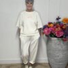 Deze jog broek met strik combineert ultiem comfort met een trendy uitstraling. De strikdetail bij de taille geeft een vrouwelijke touch, terwijl de zachte, comfortabele stof zorgt dat de broek heerlijk draagt. Perfect voor een casual dag of een relaxte maar stijlvolle look. Dankzij het one size model is de broek draagbaar tot en met maat 40/42.