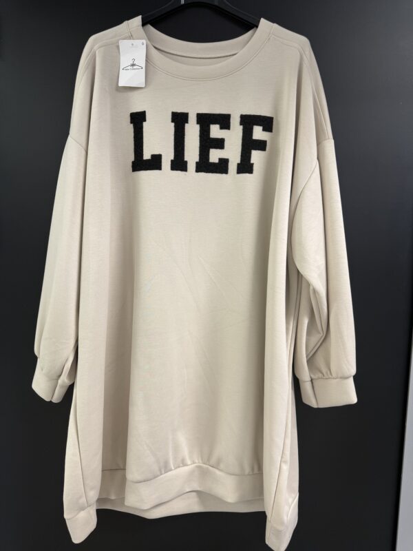 Deze comfortabele jog tuniek is een perfecte combinatie van stijl en draaggemak. De tuniek is uitgevoerd in een zachte, soepele stof en heeft een casual uitstraling, ideaal voor dagelijks gebruik. Op de voorkant staat de tekst “Lief”, wat zorgt voor een speels en modieus detail.