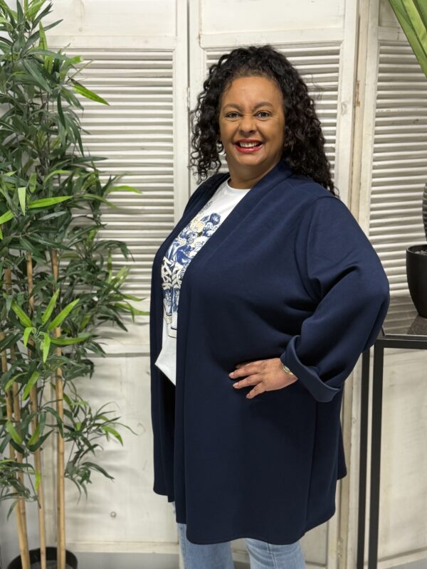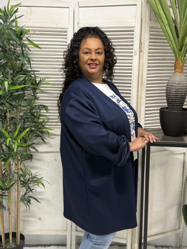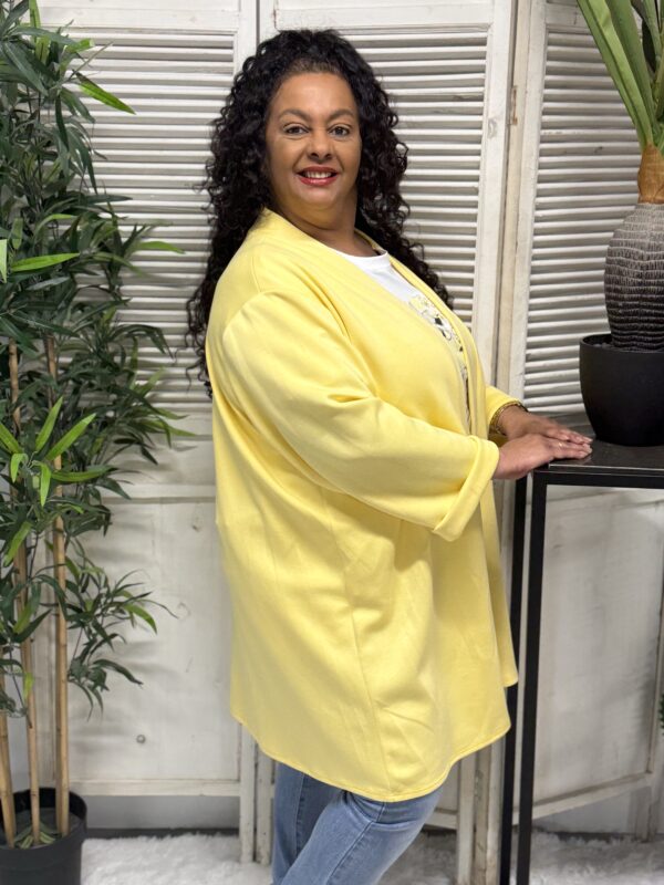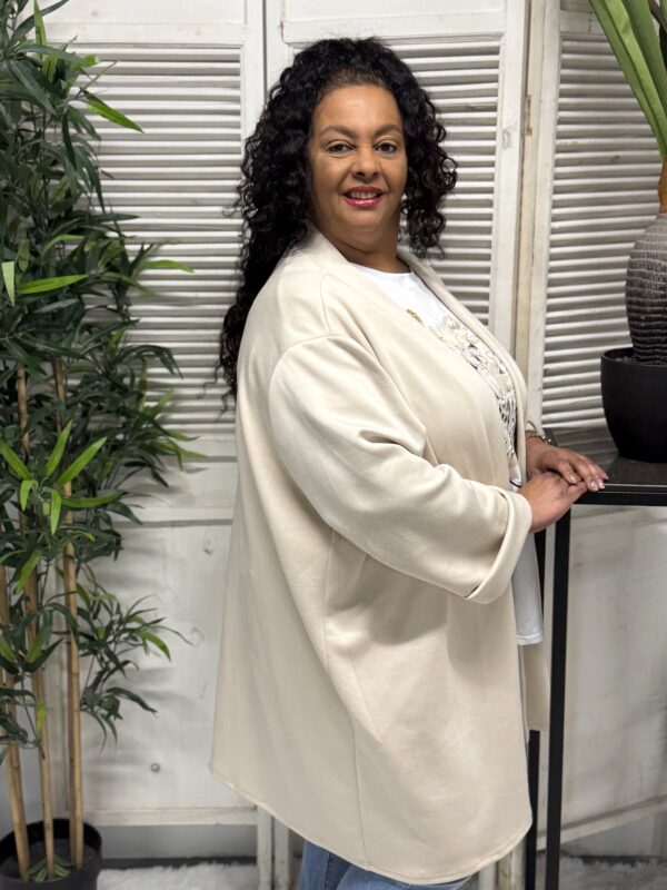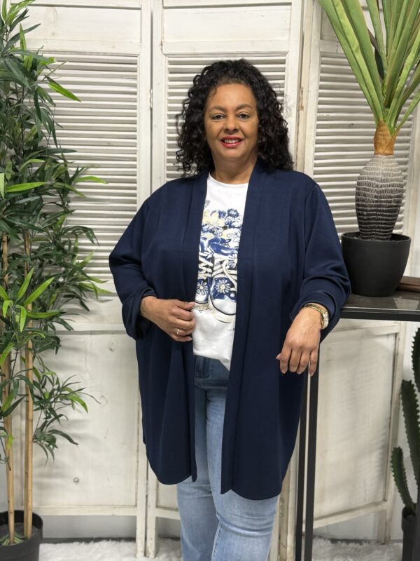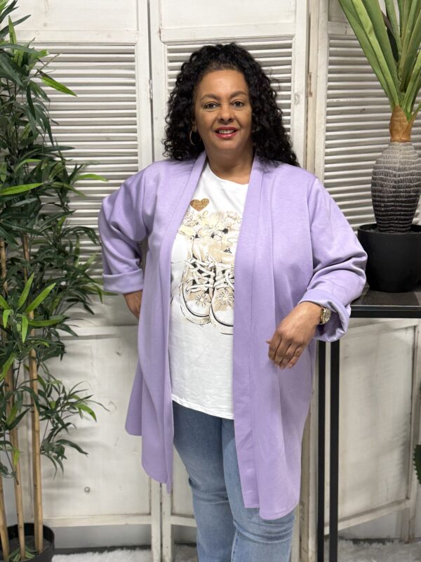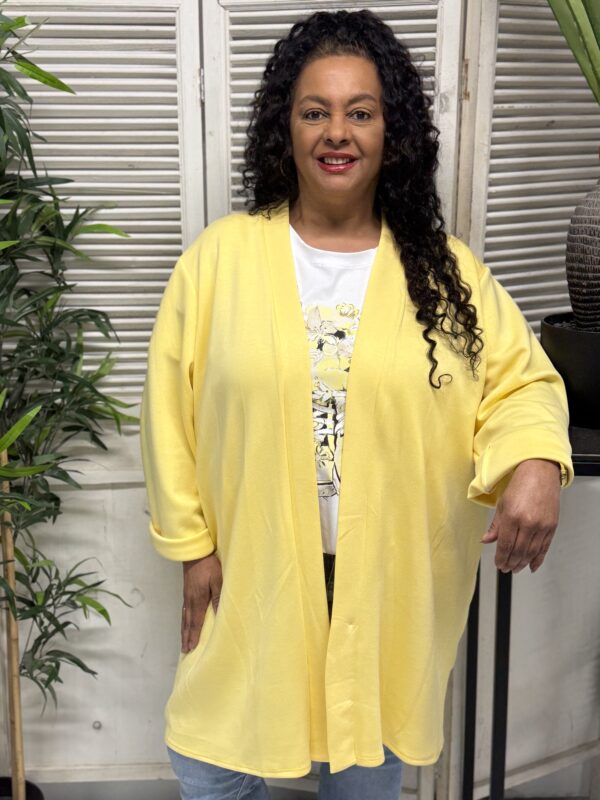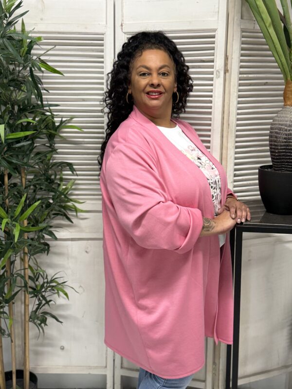 Het jog vest is verkrijgbaar in verschillende kleuren en heeft een ruime pasvorm. Het model is één maat en kan comfortabel worden gedragen tot en met maat 52. Met een borstwijdte (oksel tot oksel) van ca. 80 cm en een lengte van ca. 85 cm valt het vest mooi en flatterend.