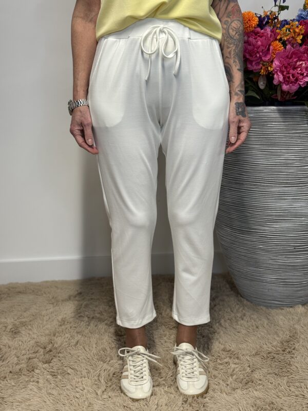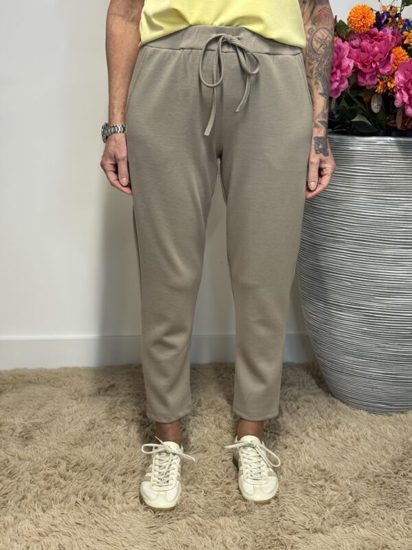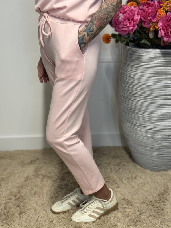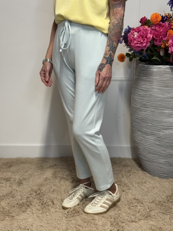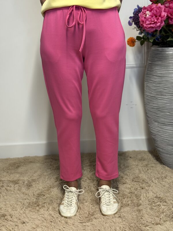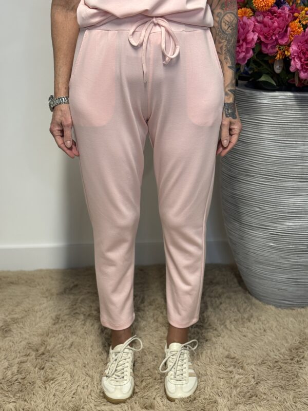 Deze joggingbroek met smalle pijp is perfect voor een casual, relaxte look met een stijlvolle twist. Het slanke model zorgt voor een flatterende pasvorm, terwijl de zachte en rekbare stof ultiem comfort biedt. Verkrijgbaar in diverse leuke kleuren om je outfit elke dag af te wisselen. Het one size model is draagbaar tot en met maat 40/42.