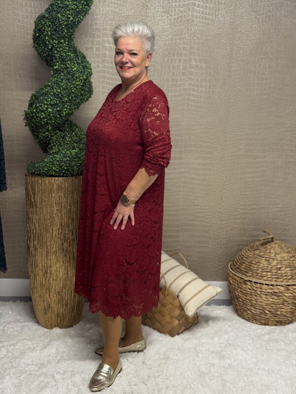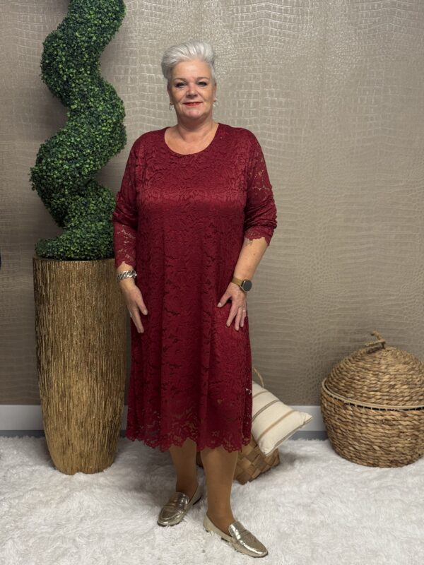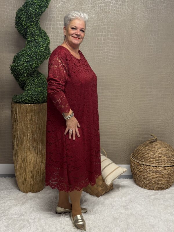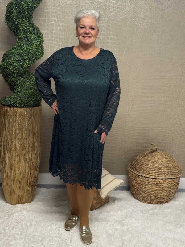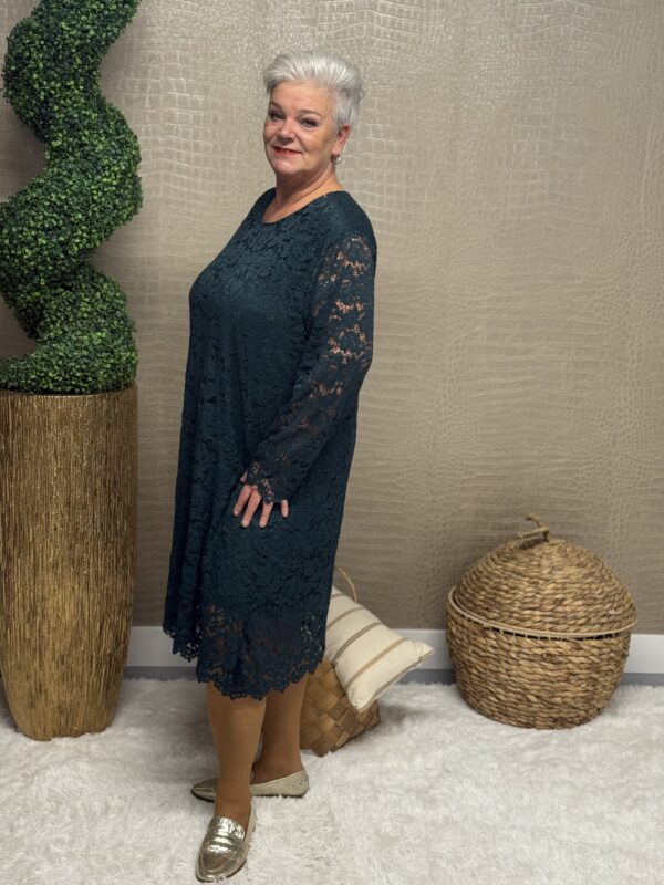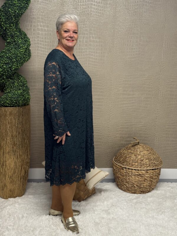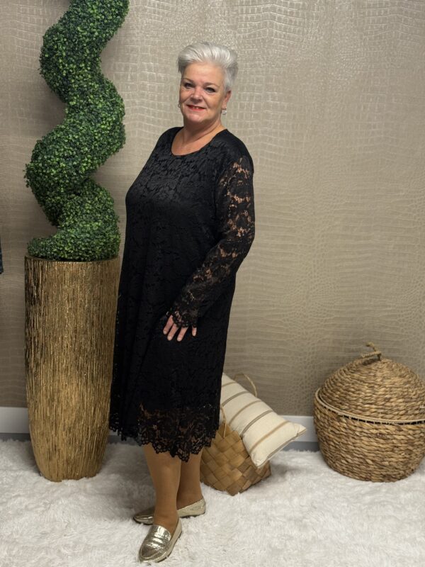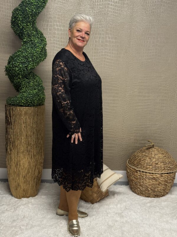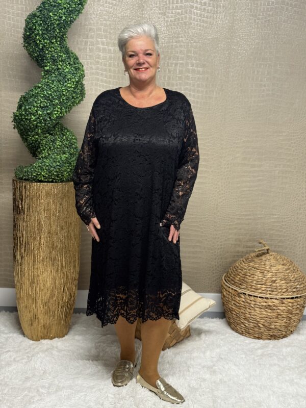 Deze kanten jurk straalt pure elegantie uit! De prachtige kantdetails geven een romantische, vrouwelijke uitstraling, terwijl de soepele pasvorm ervoor zorgt dat de jurk mooi valt en heerlijk zit. Dankzij het one size model, geschikt tot en met maat 48/50, is deze jurk perfect voor verschillende figuren.