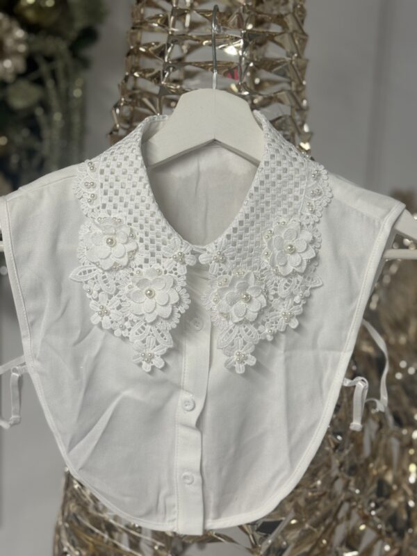 Het Kraagje Wit met Kant en Parels is het ideale accessoire voor wie haar outfit subtiel wil verfraaien en een elegante finishing touch wil geven.