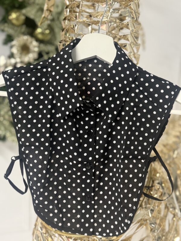 Het Kraagje Zwart met Witte Stippen is een must-have accessoire voor iedereen die haar outfit een charmante, modieuze finishing touch wil geven.