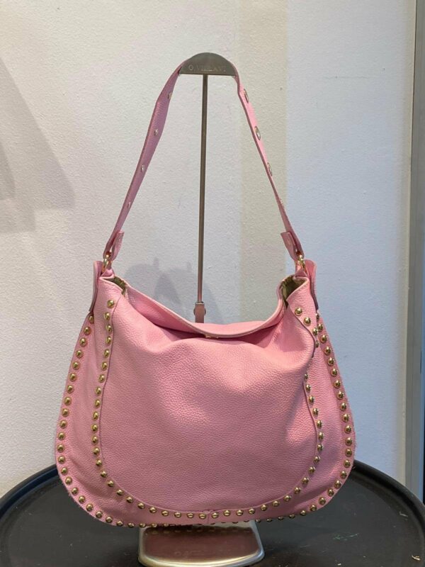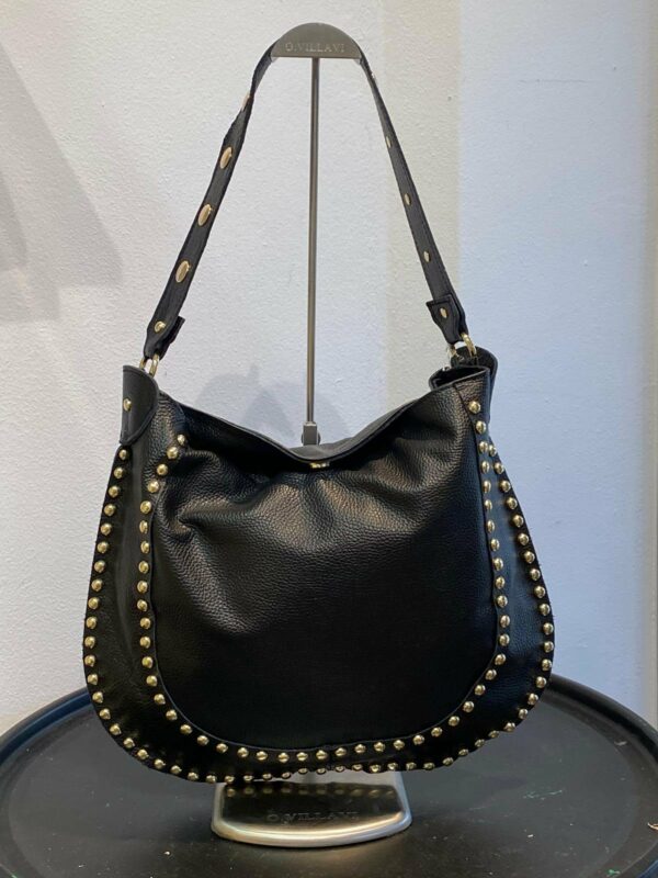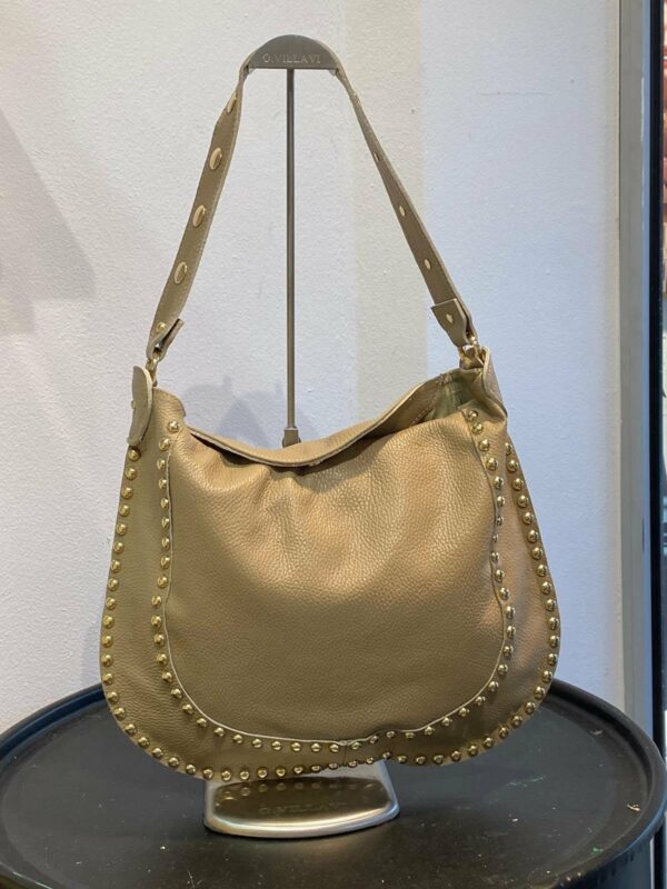 Deze leren tas met studs en klepsluiting is een perfecte mix van stoer en elegant. De studdetails geven de tas een trendy en edgy uitstraling, terwijl de klepsluiting zorgt voor een stijlvolle afwerking Ên veilige opbergruimte voor je spullen.