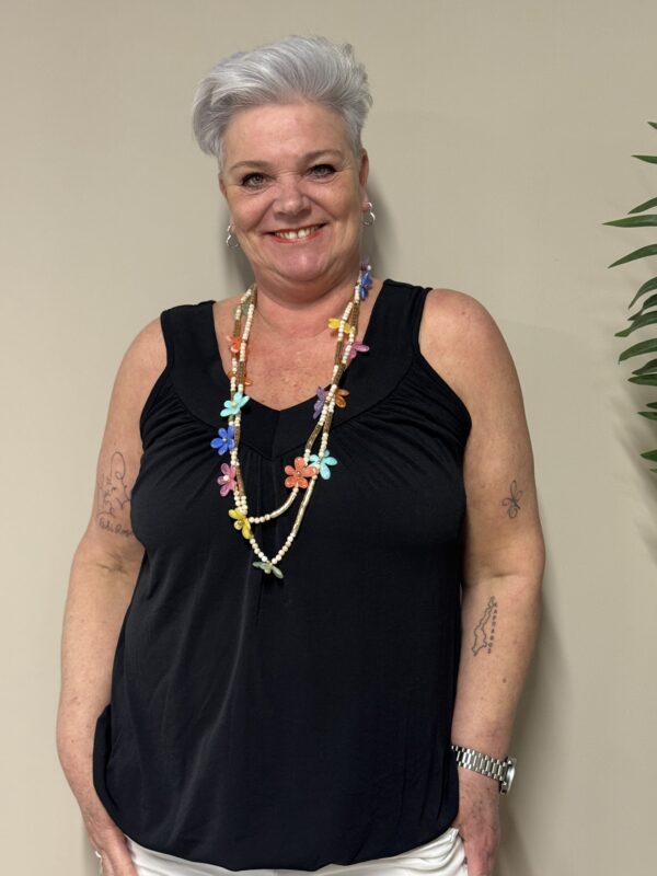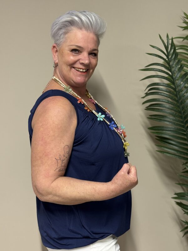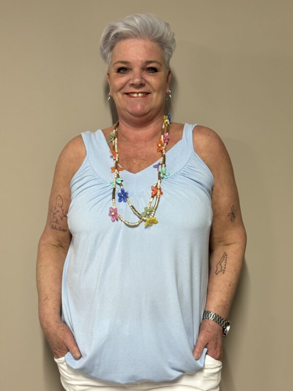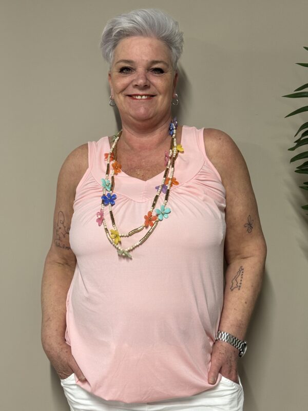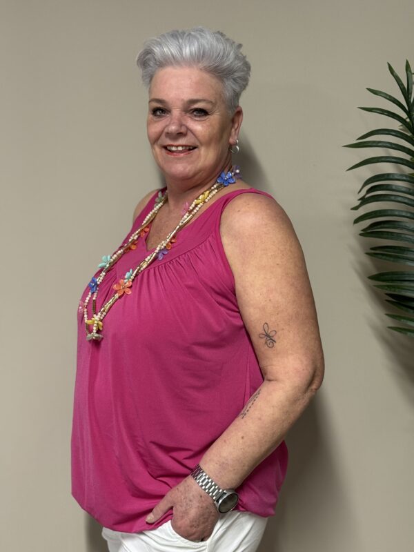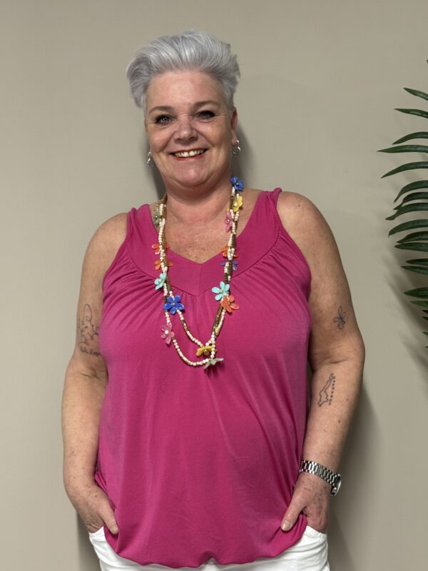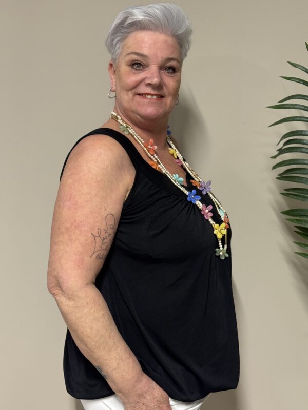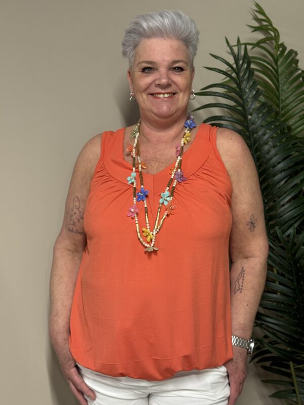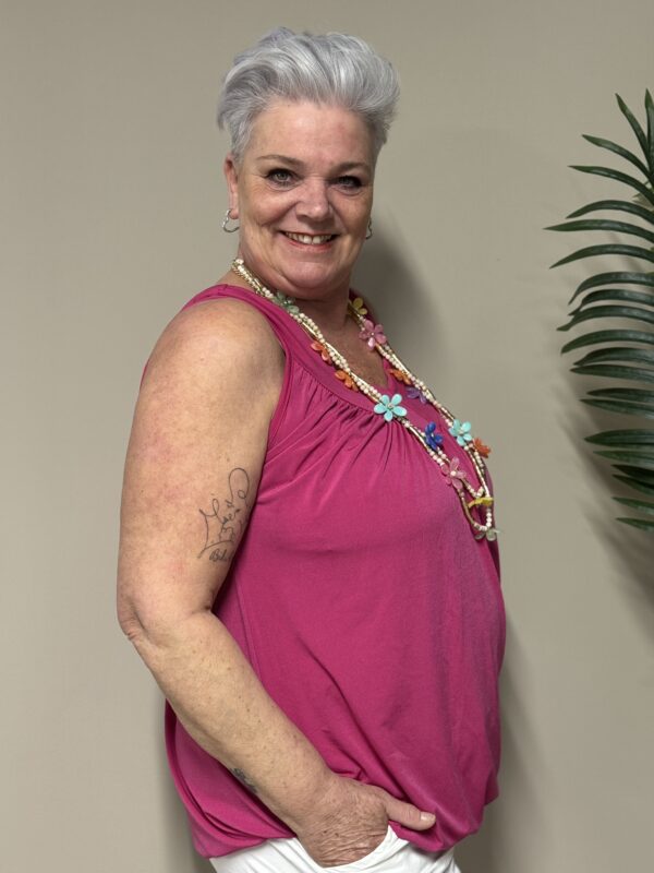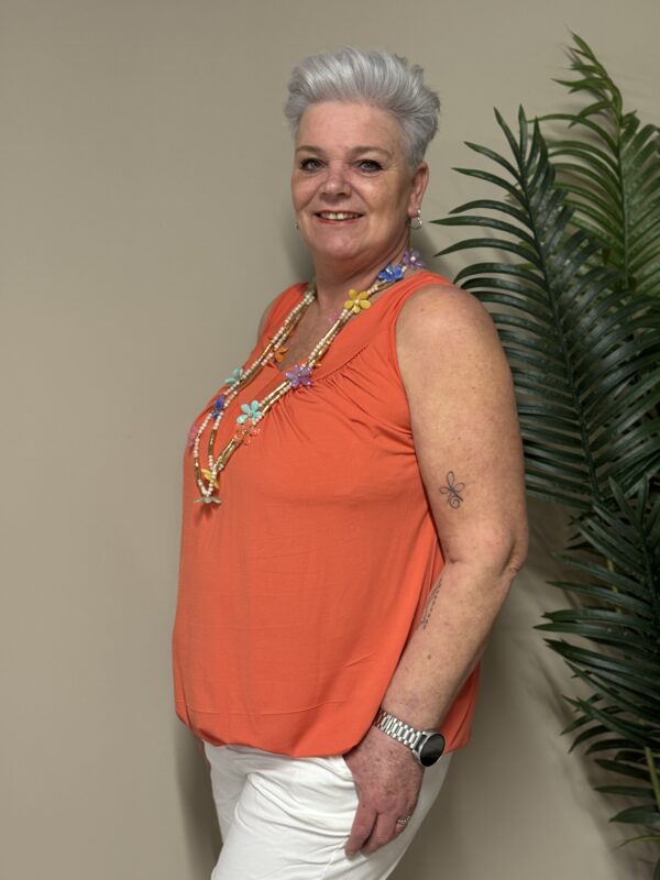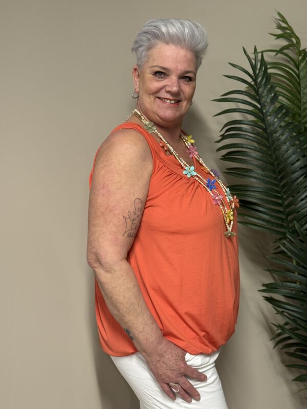 Dankzij het one size model is de top draagbaar tot en met maat 48/50. De losse pasvorm zorgt ervoor dat hij comfortabel zit zonder strak aan te sluiten.