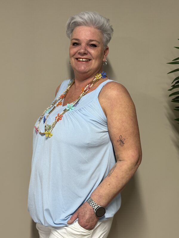 Deze mouwloze ballontop is een stijlvolle en veelzijdige toevoeging aan je garderobe. Dankzij het speelse ballonmodelvalt de top mooi en luchtig langs het lichaam, wat zorgt voor een flatterende en comfortabele pasvorm. Perfect voor warme dagen of om te combineren met een vest of jasje 💕