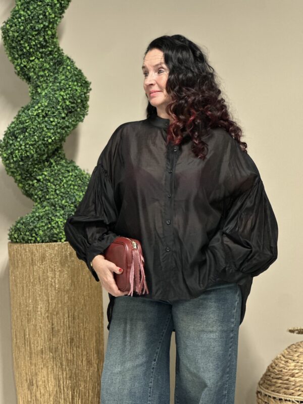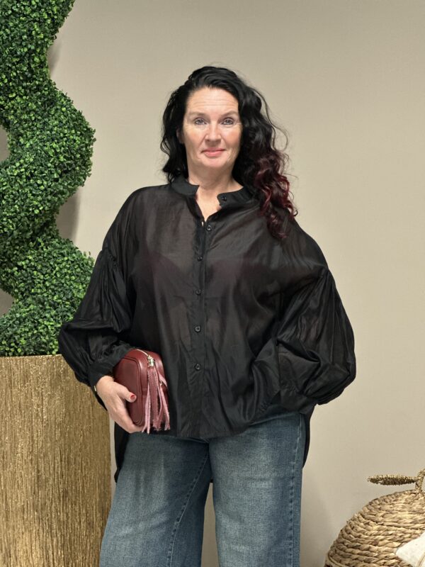 Deze oversized blouse is hét item voor een stijlvolle, moderne look. De ronde hals zorgt voor een minimalistische uitstraling, terwijl de pofmouwen een vrouwelijke en trendy touch geven. Dankzij de losse pasvorm zit de blouse heerlijk luchtig en kun je ‘m moeiteloos combineren.