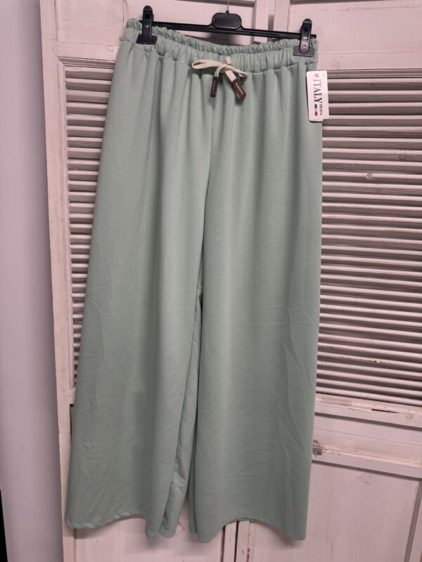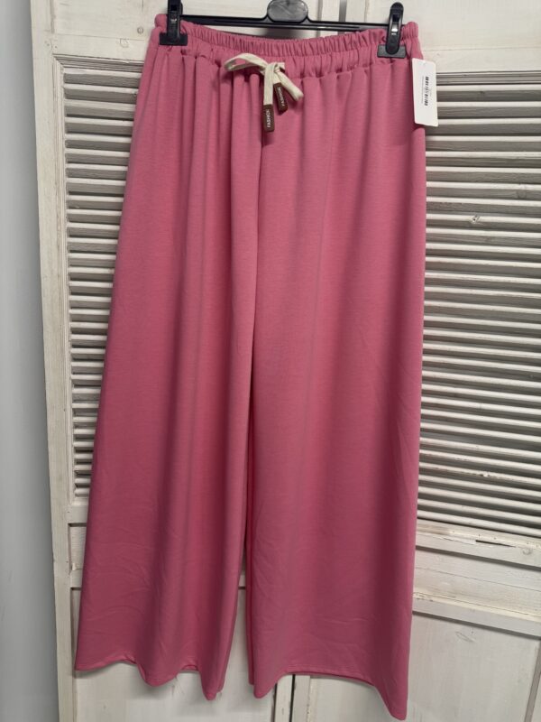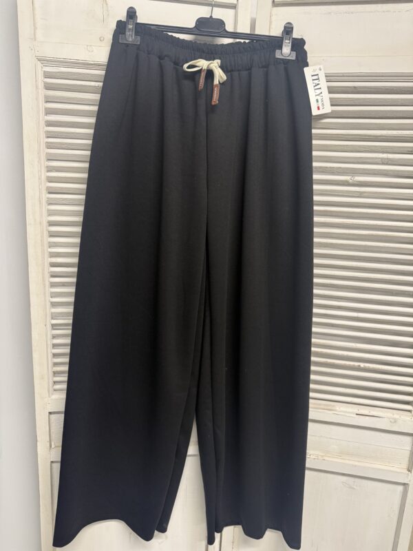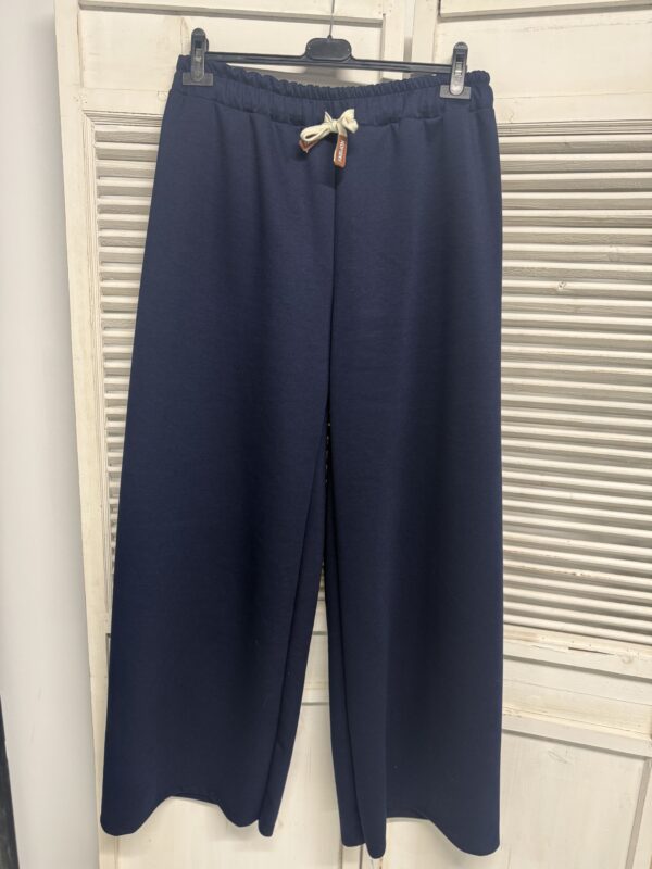 Dankzij de wijde pijpen en de soepel vallende stof oogt de broek elegant, terwijl hij heerlijk comfortabel zit.