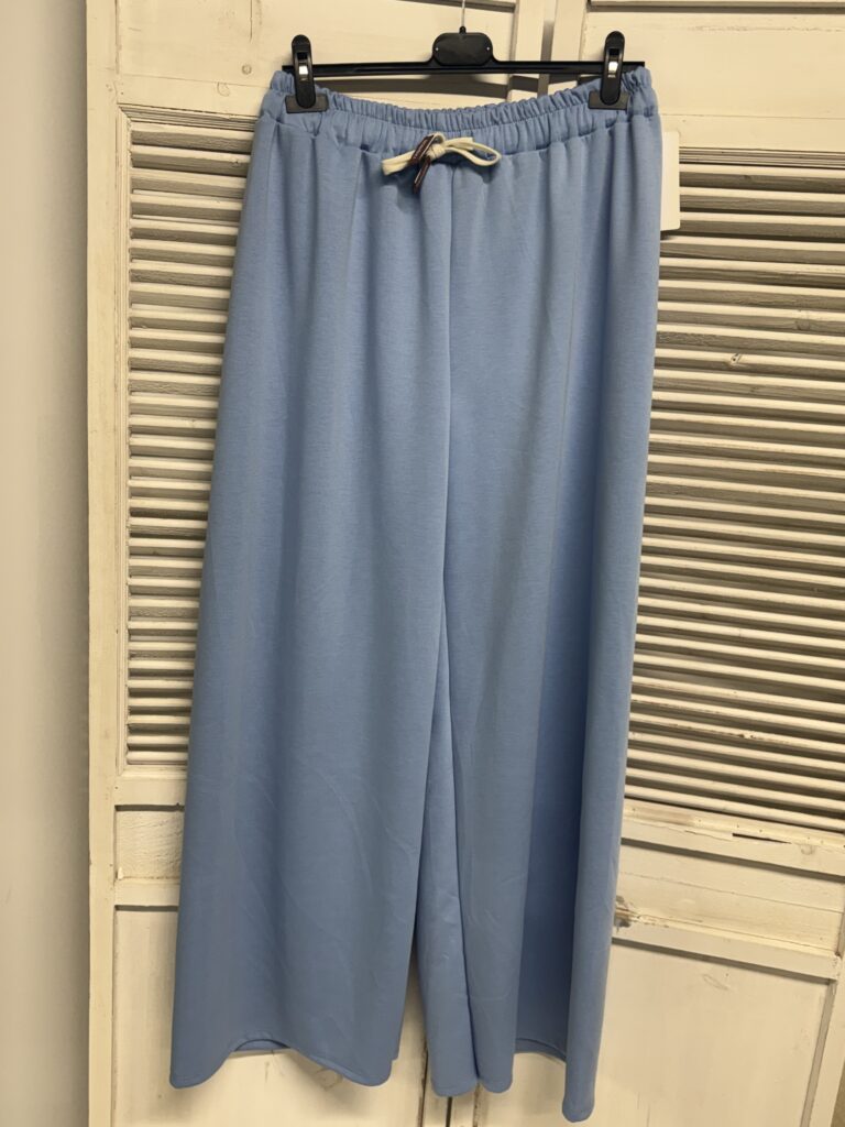 Dankzij de wijde pijpen en de soepel vallende stof oogt de broek elegant, terwijl hij heerlijk comfortabel zit.