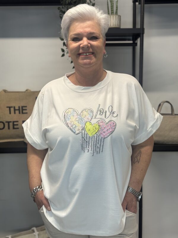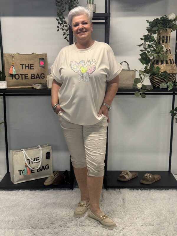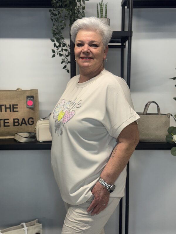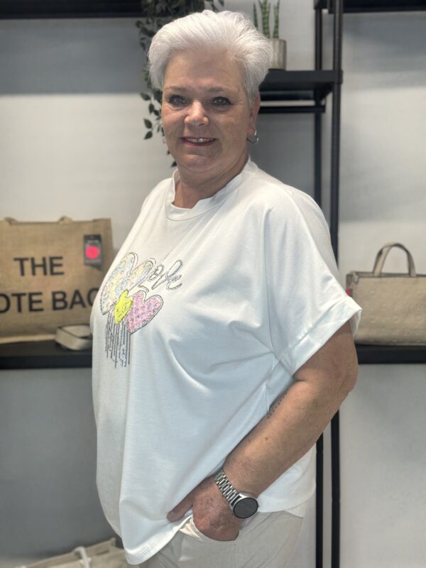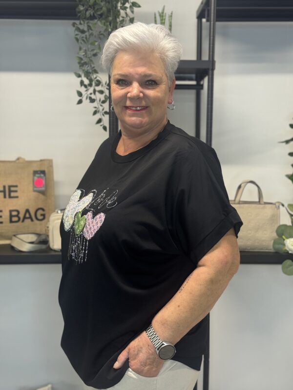 Dit shirt met “Love” opdruk is de perfecte combinatie van een basic en een trendy statement 💖 Een must-have voor een casual maar stijlvolle look!