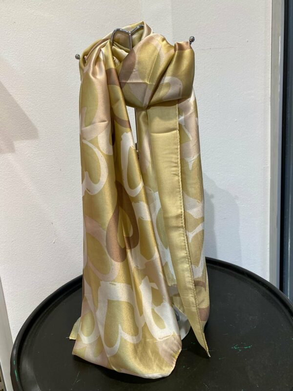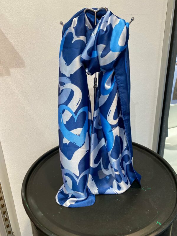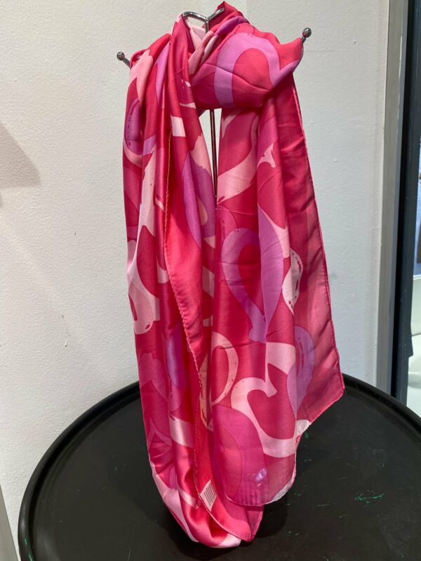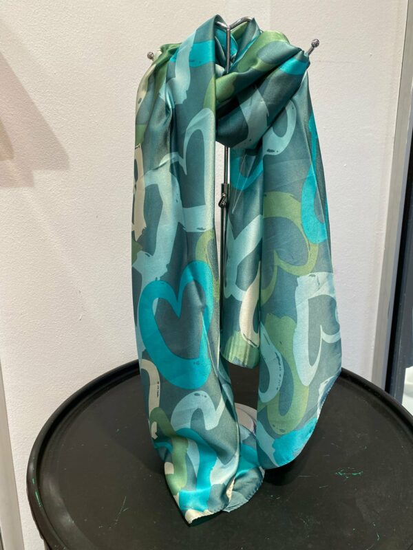 Deze sjaal met hart print geeft je outfit een speelse en liefdevolle touch. De combinatie van 80% viscose en 20% zijde zorgt voor een heerlijk zachte stof met een subtiele, luxe glans. Lichtgewicht en comfortabel – perfect om los te dragen of elegant om de hals te knopen.