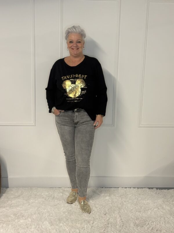 De jeans is gemaakt van een hoogwaardige katoenmix met stretch, waardoor hij prettig draagt en zijn vorm goed behoudt. Dankzij de tijdloze grijze kleur is deze spijkerbroek eenvoudig te combineren met zowel casual als geklede tops. Verkrijgbaar in de maten 44 t/m 54, ideaal voor een comfortabele en flatterende fit.