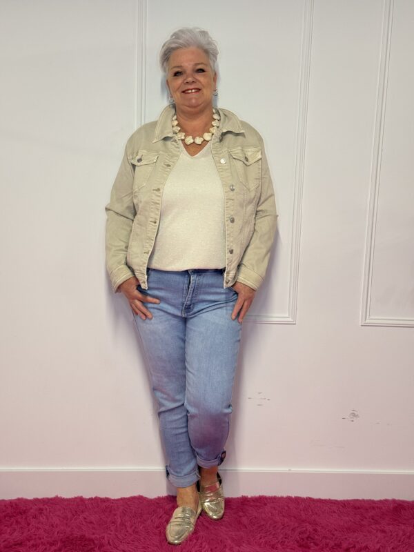De stevige katoenmix met een lichte stretch zorgt ervoor dat het jasje prettig zit en mooi aansluit. Ideaal om te dragen over een top, blouse of jurk – van casual tot gekleed 🌿